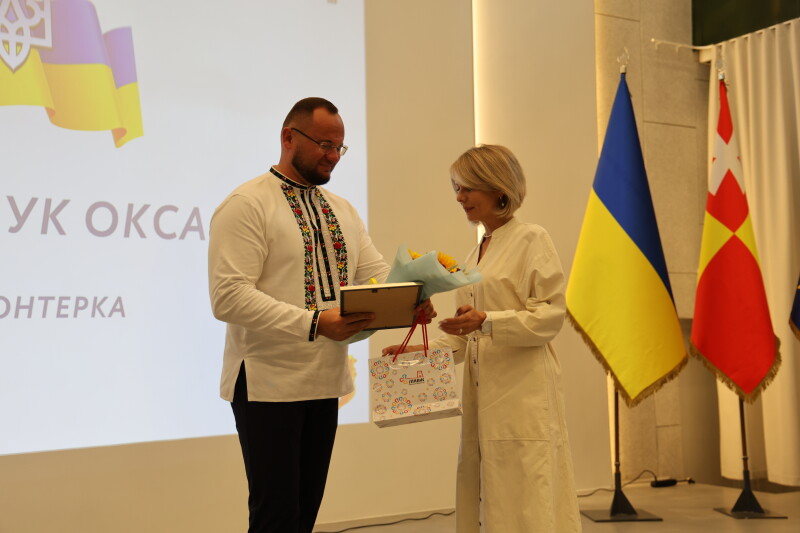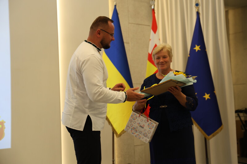 Міський голова вручив відзнаки та цінні подарунки окремим людям та трудовим колективам. Зокрема, нагороди отримали військовослужбовці, волонтери, рятувальники, медики, працівники підприємств тепло- та водопостачання. Усім присутнім міський голова подякував за сумлінну службу, самовіддану працю та активну громадянську позицію. Побажав міцного здоров’я, злагоди і добра кожній родині, сили духу та непохитної віри в Україну.