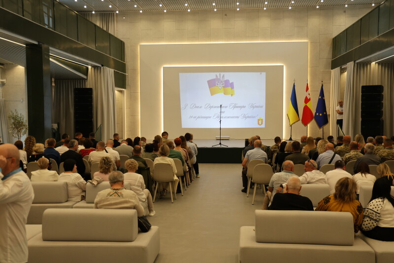 У Луцькому бізнес-просторі (колишньому кінотеатрі «Батьківщина») відбулися урочистості до Дня Державного Прапора та 34-ї річниці Незалежності України. З нагоди головних державних свят Луцький міський голова Ігор Поліщук вручив Почесні грамоти та Подяки міського голови жителям громади, які своєю самовідданою працею роблять вагомий внесок у її розвиток та захист України.