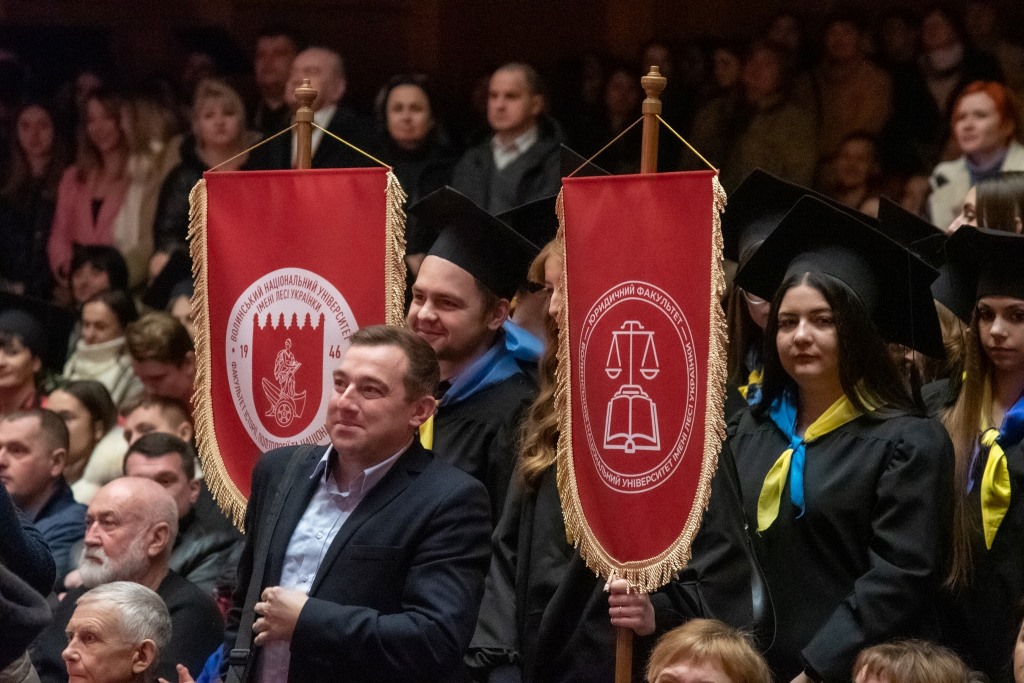 Випускників привітали голова обласної ради Григорій Недопад, народна депутатка України Ірина Констанкевич, ректор університету Анатолій Цьось, заступниця Луцького міського голови Ірина Чебелюк, представники освітянського середовища.