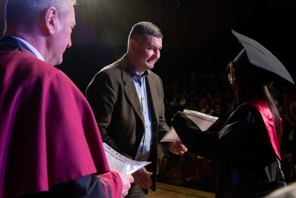 «Це розумні, здатні якісно працювати для розвитку нашої держави люди, які вже завтра почнуть свою діяльність, – підкреслив ректор. – Я вдячний кожному з наших випускників, адже впродовж навчання студенти допомагали захисникам, волонтерили і здобували освіту. Саме завдяки їхнім науковим здобуткам наш університет увійшов до десятки кращих класичних університетів України. Тож бажаю, аби ви в майбутньому максимально проявили свій патріотизм та професійність».