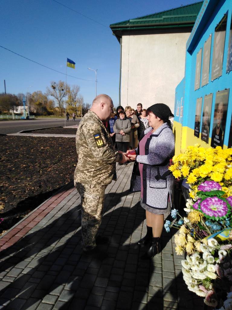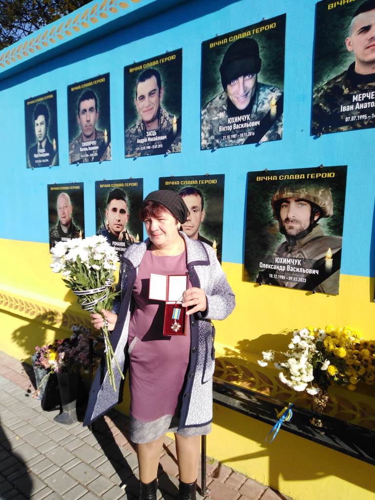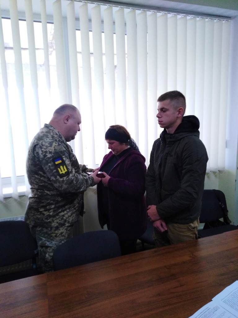Нагороду передали мамi Юхимчук Свiтланi Iванiвнi та дружинi Бекерук Людмилi Василiвнi начальник Другого вiддiлу Луцького районного територіального центру комплектування та соціальної підтримки підполковник Захаров Валерій Олександрович, голова Доросинiвської ТГ Касянчук Микола Володимирович та голова Копачiвської ТГ Совтис Олександр Євгенович.