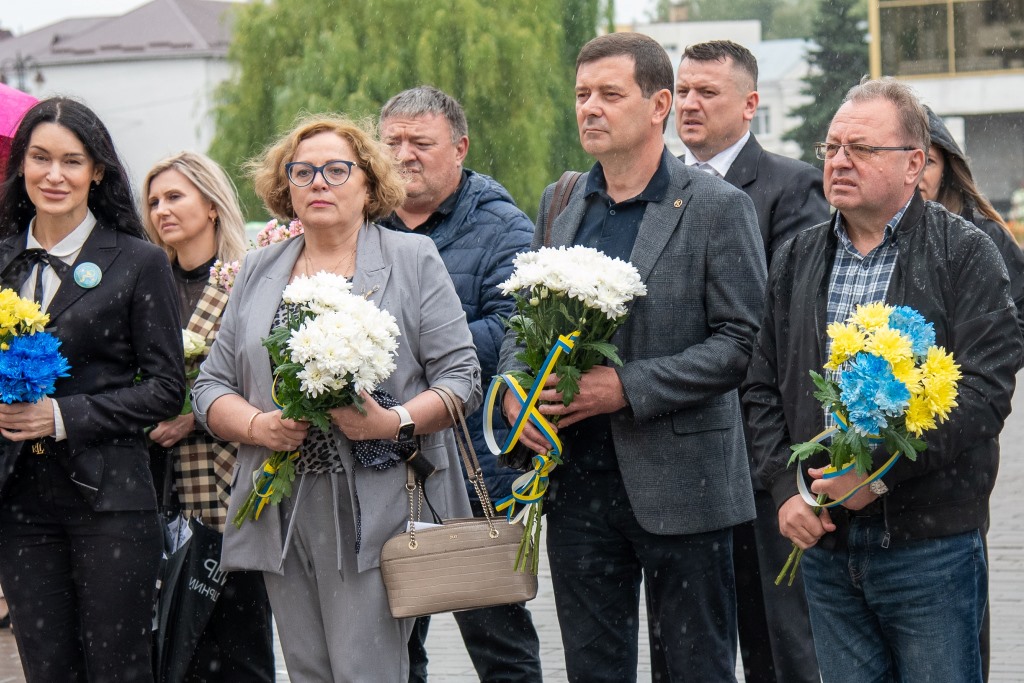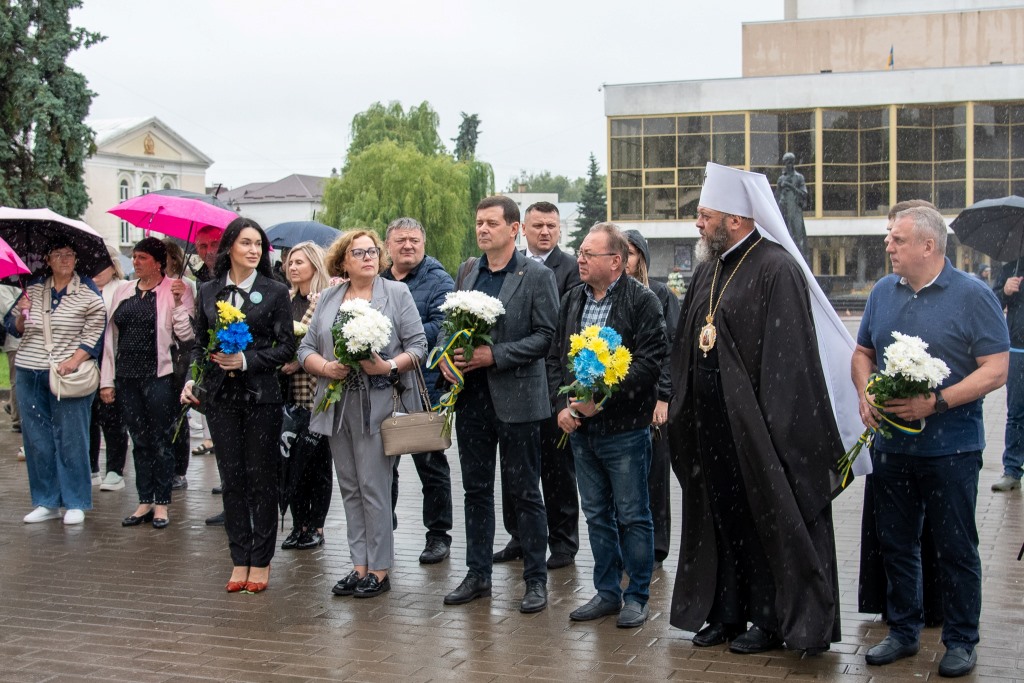 Присутні поклали квіти до пам’ятного фотостенду загиблих героїв на Театральному майдані та вшанували їх молитвою і хвилиною мовчання.
