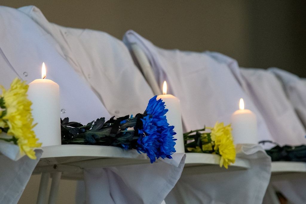 Національний проєкт «Посвіт пам’яті» – це ініціатива Ордену Святого Пантелеймона, покликана вшанувати медичних працівників, які загинули під час виконання професійного обов’язку внаслідок збройної агресії російської федерації. 12 портретів, 12 порожніх стільців та 12 білих халатів з прізвищами волинських лікарів стали символічним нагадуванням про тих медичних працівників, які стали на захист Батьківщини та віддали за неї своє життя.