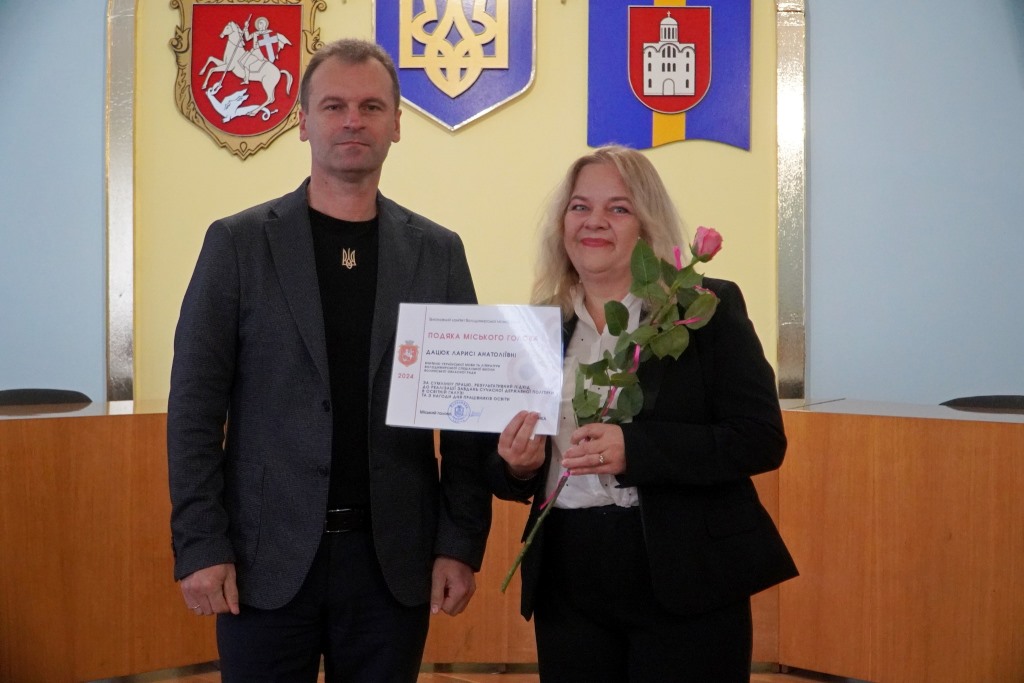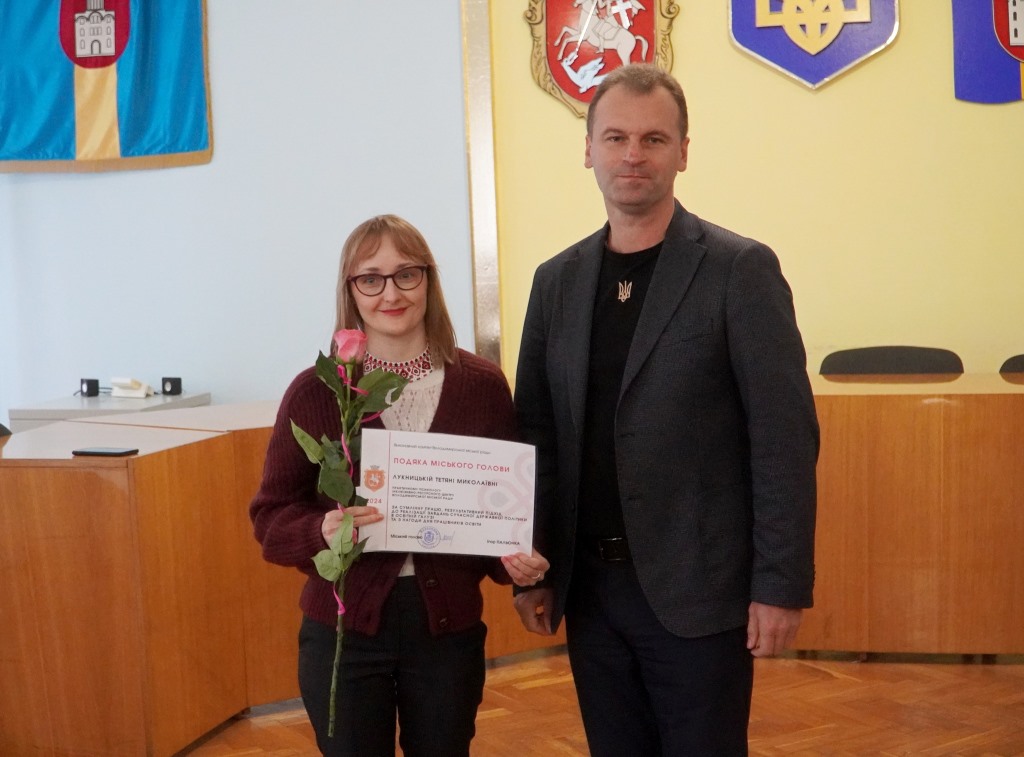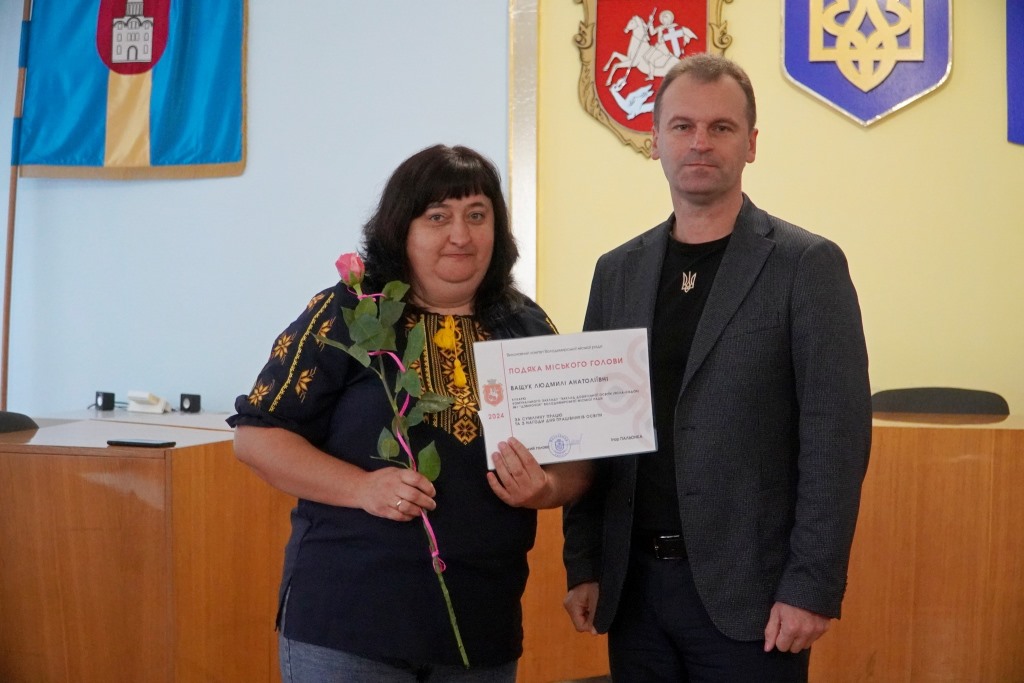 Під час урочистостей міський голова вручив подяки найкращим педагогам – працівникам закладів загальної середньої освіти, дошкільної освіти та мистецьких закладів, відзначивши їхню майстерність, професіоналізм і любов до своєї справи.