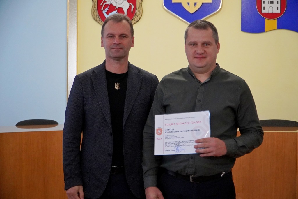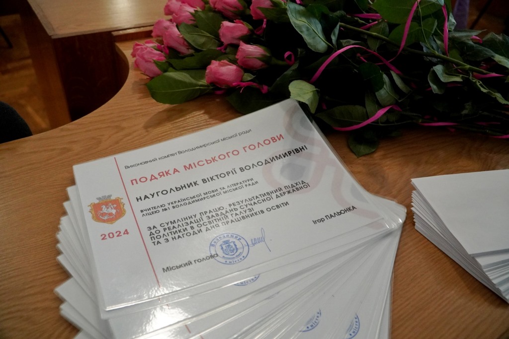 Володимирський міський голова Ігор Пальонка особисто привітав освітян громади, подякував їм за щоденну віддану працю та внесок у розвиток майбутніх поколінь. Також підкреслив, що підтримка освіти є одним із пріоритетів для місцевої влади, яка і надалі буде робити все можливе для покращення умов праці вчителів та вихователів у закладах громади.