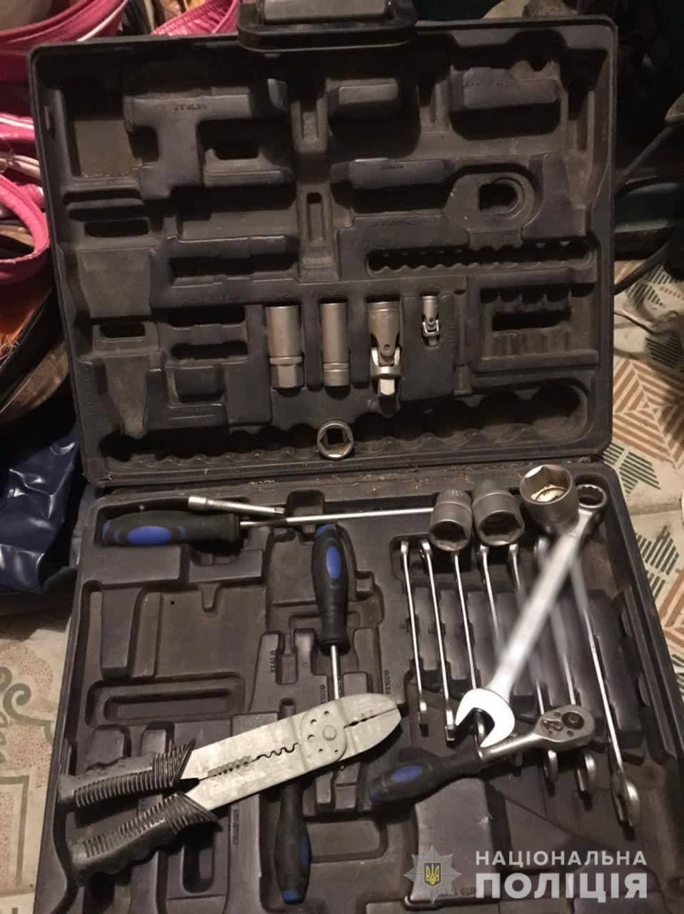 Під час обшуку виявили та вилучили велику кількість електроінструментів, кабелі, відмички, рукавички, одяг, радіостанції, засоби мобільного зв’язку та інші речі, які або можуть бути краденими, або використовувались у злочинній діяльності.