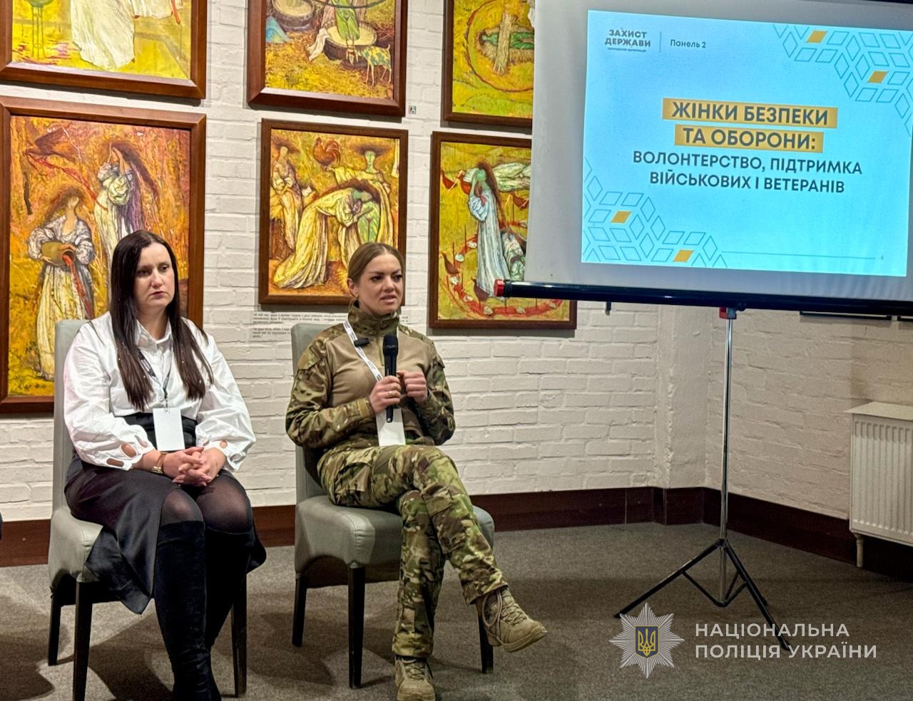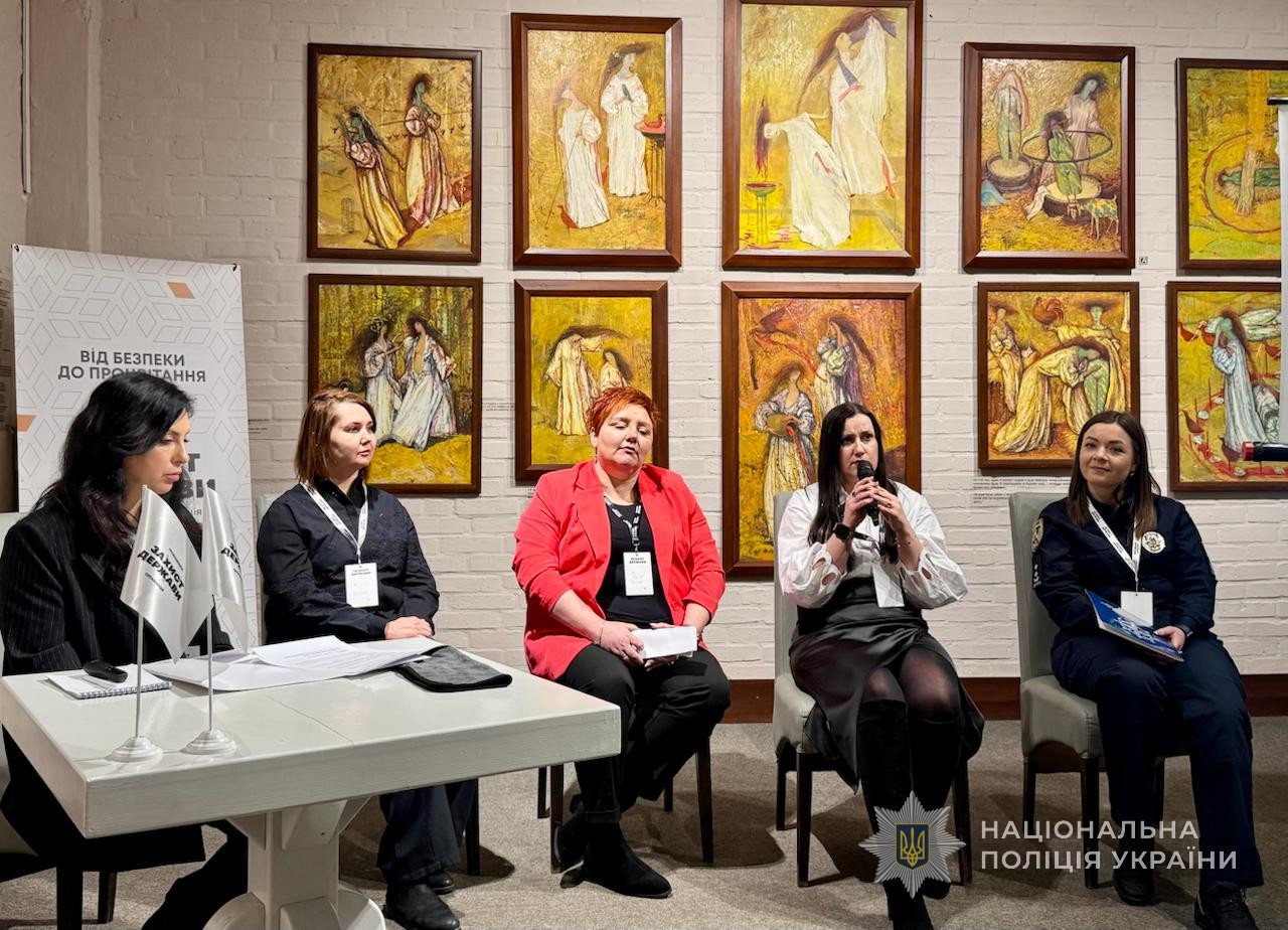 У заході взяли участь і представниці поліції. Зокрема, Наталя Бартошук з департаменту головної інспекції та дотримання прав людини розповіла, як змінилась діяльність поліції під час повномасштабного вторгнення. Зараз жінки-поліцейські евакуюють людей, протидіють домашньому насильству, служать у бойових підрозділах та разом з тим виконують інші функції.