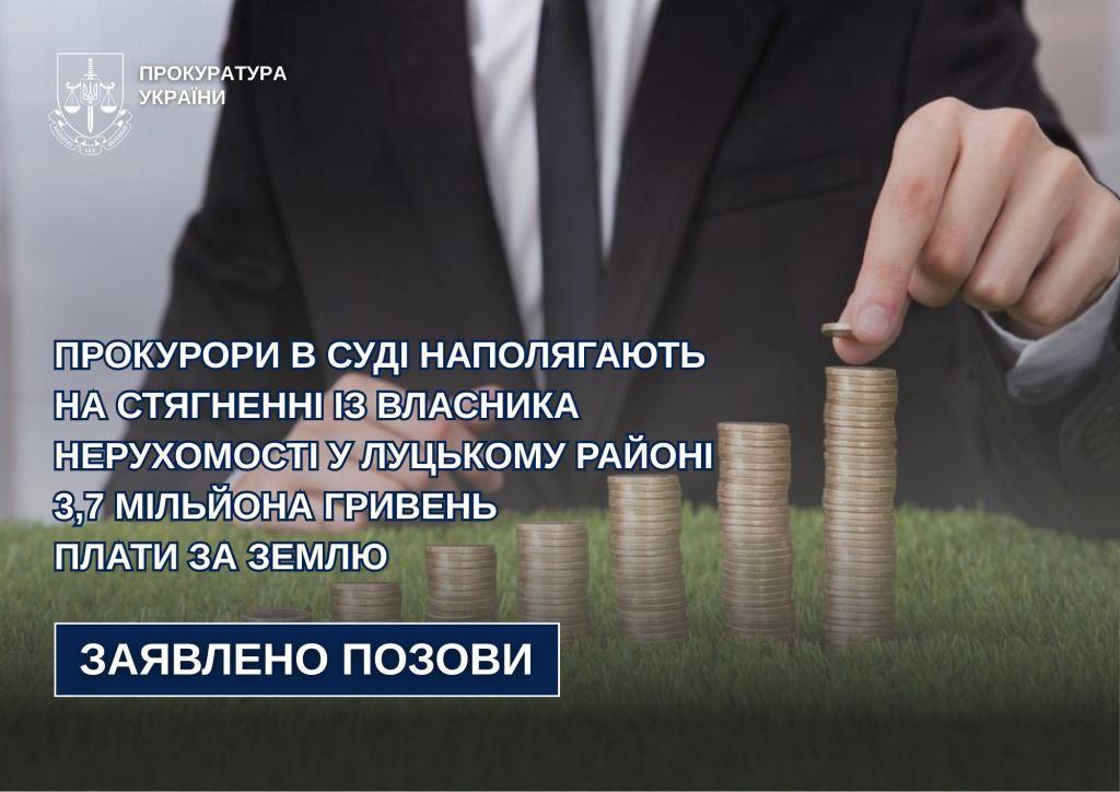 Прокурори в суді наполягають на стягненні із власника нерухомості у Луцькому районі 3,7 мільйона гривень плати за землю