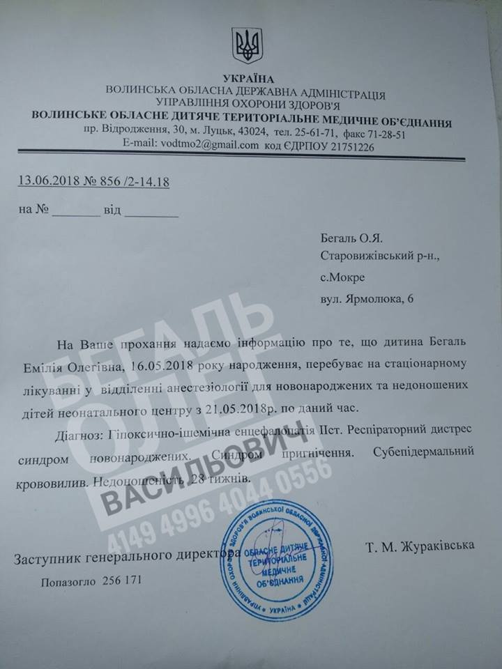 Про це повідомив батько дівчинки Олег Бегаль на своїй сторінці у “Фейсбук”.