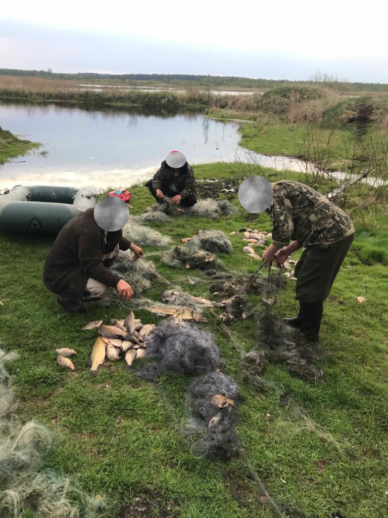 Близько 6 години викрили трьох громадян, які здійснювали вилов водних біоресурсів з гумового човна забороненими знаряддями лову. За допомогою десяти сіток вони встигли виловити рибу: карась сріблястий – 106 екз., лин – 27 екз., окунь – 22 екз., щука – 2 екз. Збитки, завдані рибним запасам, склали 13 156 гривень.