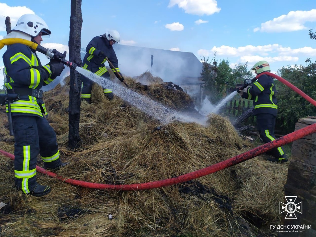 Увечері цього ж дня вогнеборці 11-ї ДПРЧ селища Шацьк спільно з працівниками МПО села Піща загасили пожежу оборогу із сіном в селі Пулемець Ковельського району, ймовірна причина загорання – дитячі пустощі з вогнем.