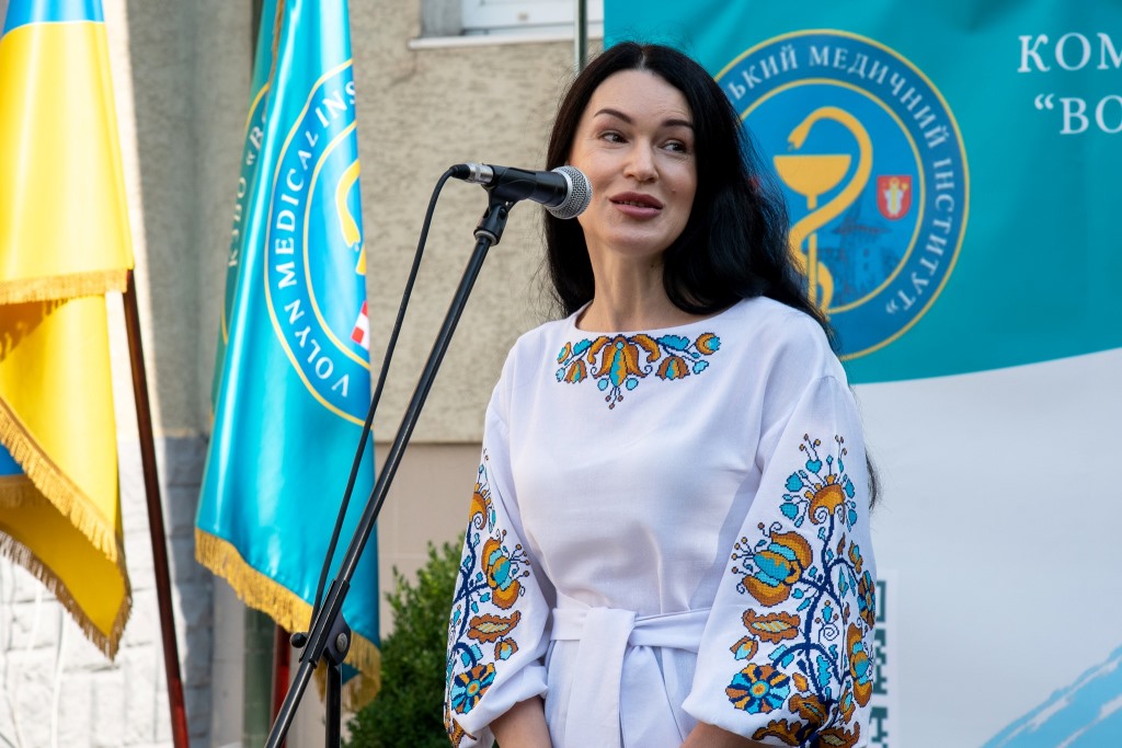 «Дорогі першокурсники, ви обрали одну із найскладніших, найгуманніших та найвідповідальніших професій. Ви ті, хто буде рятувати життя. Адже медик – це захисник життя, у мирний час він рятує від недуг, а на фронті – від смерті. Тож, щиро зичу усім вам стійкості, витривалості та наснаги здобувати омріяний фах», – висловила побажання ректорка Волинського медінституту Тетяна Пастрик.