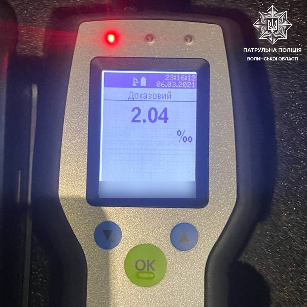 Останній пройшов огляд на стан сп’яніння на місці зупинки транспортного засобу в присутності двох свідків за допомогою спеціального технічного засобу, який після проведення тесту показав — 2, 04 проміле.