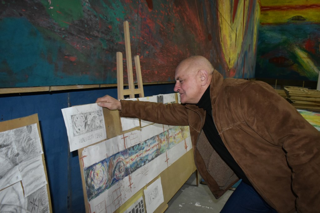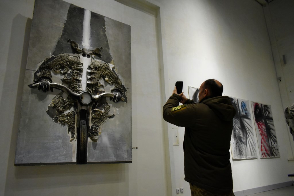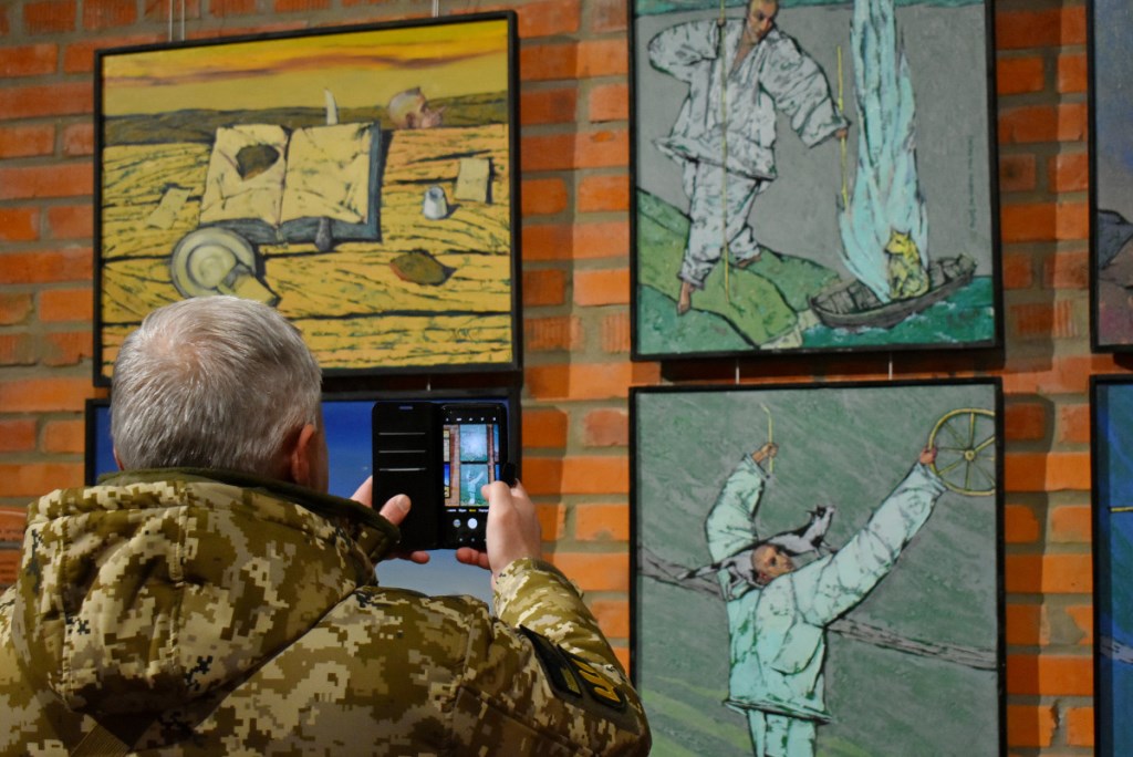 Видовищного вершника на байку для друга-байкера. Справжнісіньку сушену рибу на фоні сусальної позолоти для побратима-рибака. Панораму суворо-урочистого гуцульського весілля для роздумів. Величну і вражаючу своїм масштабом Космогонію, процес творіння якої воїни споглядали у відкритому просторі майстерні-галереї.