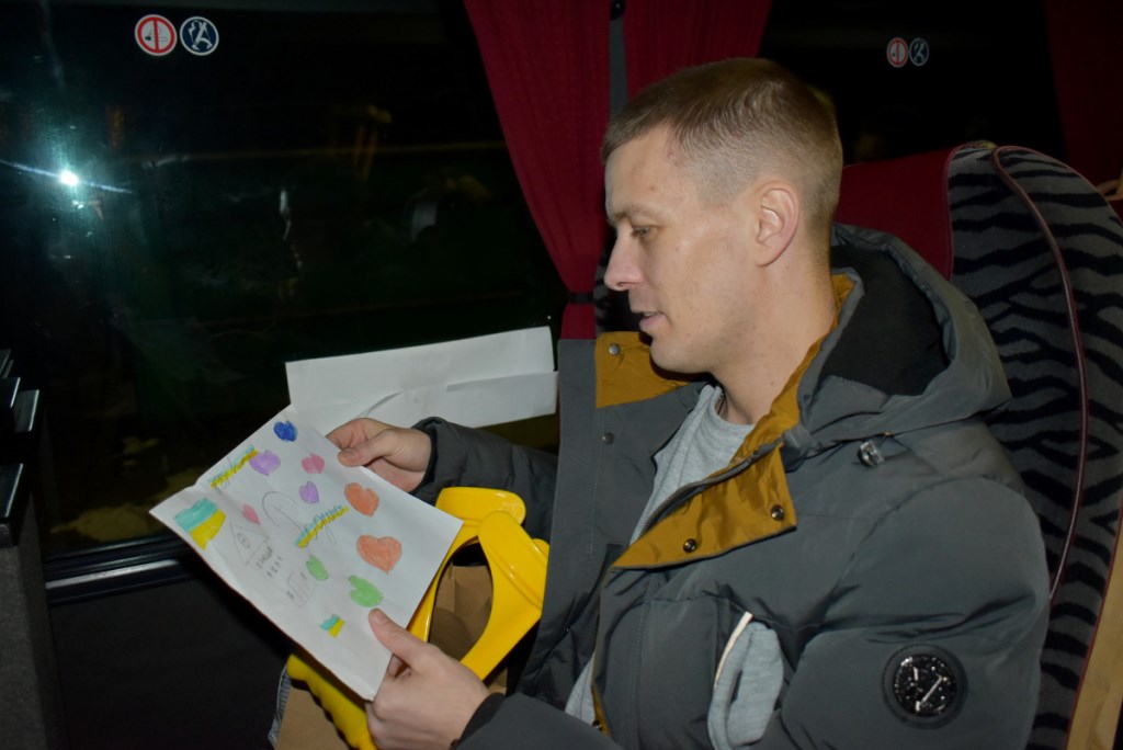 Опісля морозної прогулянки воїнів чекала спільна затишна вечеря і традиційні подарунки-обереги від найменших волонтерів – листи зі словами подяки, листівки та ангелики, сплетені дитячими руками.