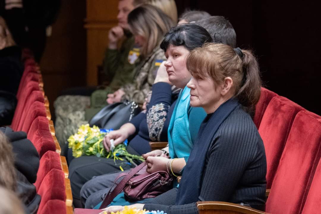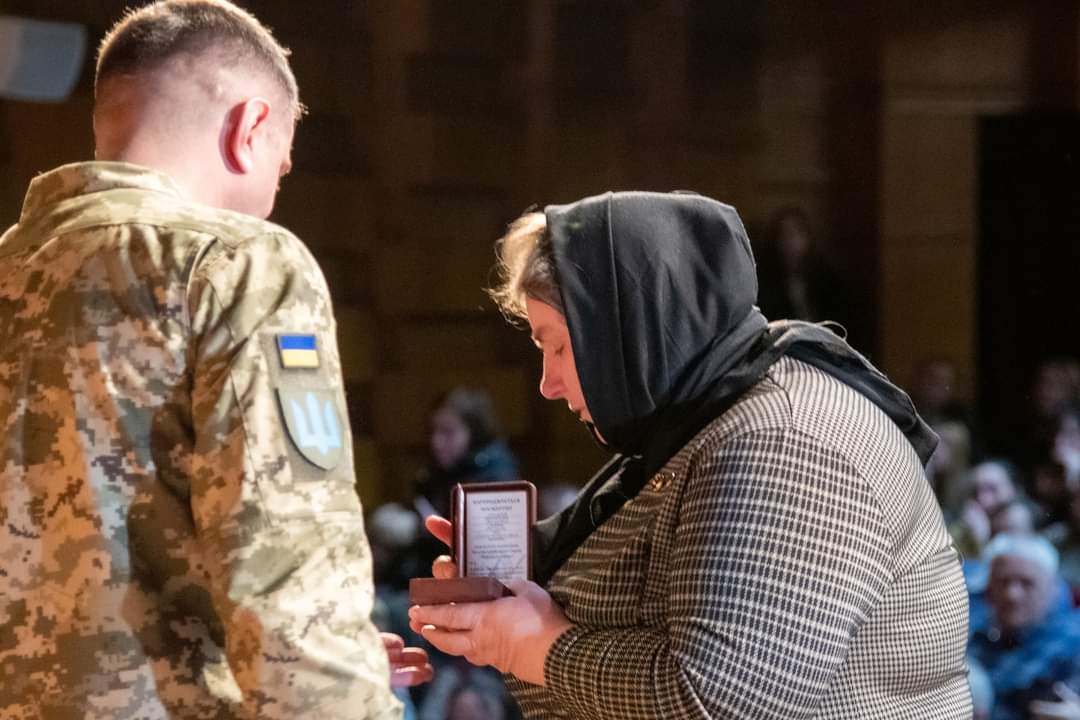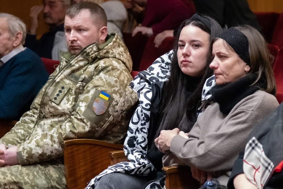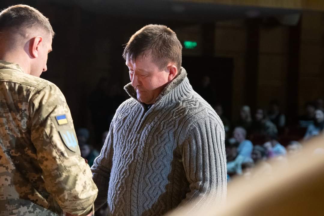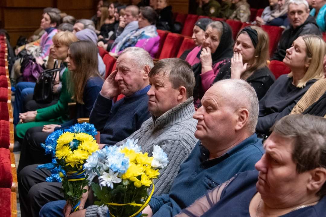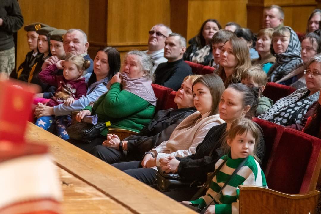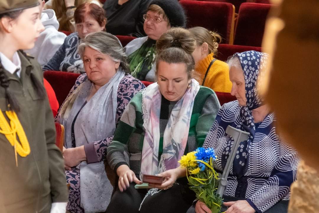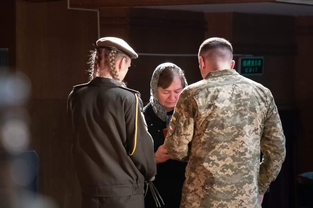«Ще вчора я зі своїми бойовими побратимами нищив ворога на Куп’янському напрямку. Сьогодні ж стою перед вами і маю велику честь вручити пам’ятні відзнаки родинам наших Героїв, які для України зробили усе, що могли, віддавши найцінніше – своє життя», – наголосив він та запропонував усім присутнім вшанувати пам’ять про загиблих хвилиною мовчання.