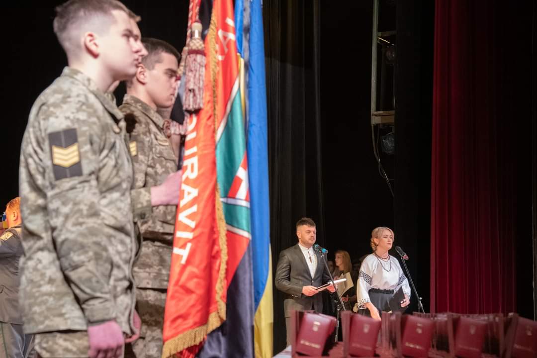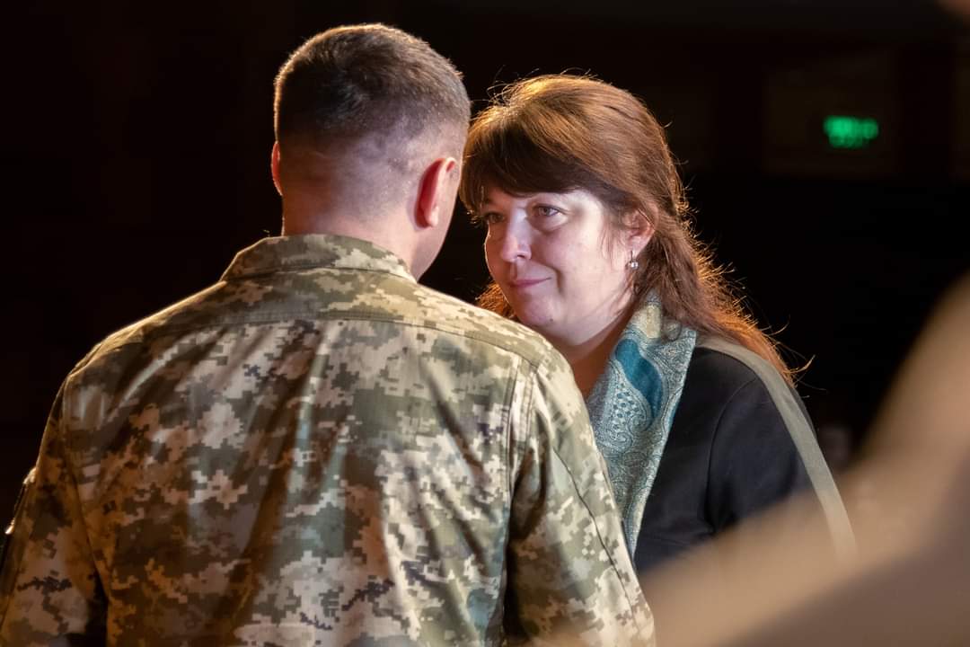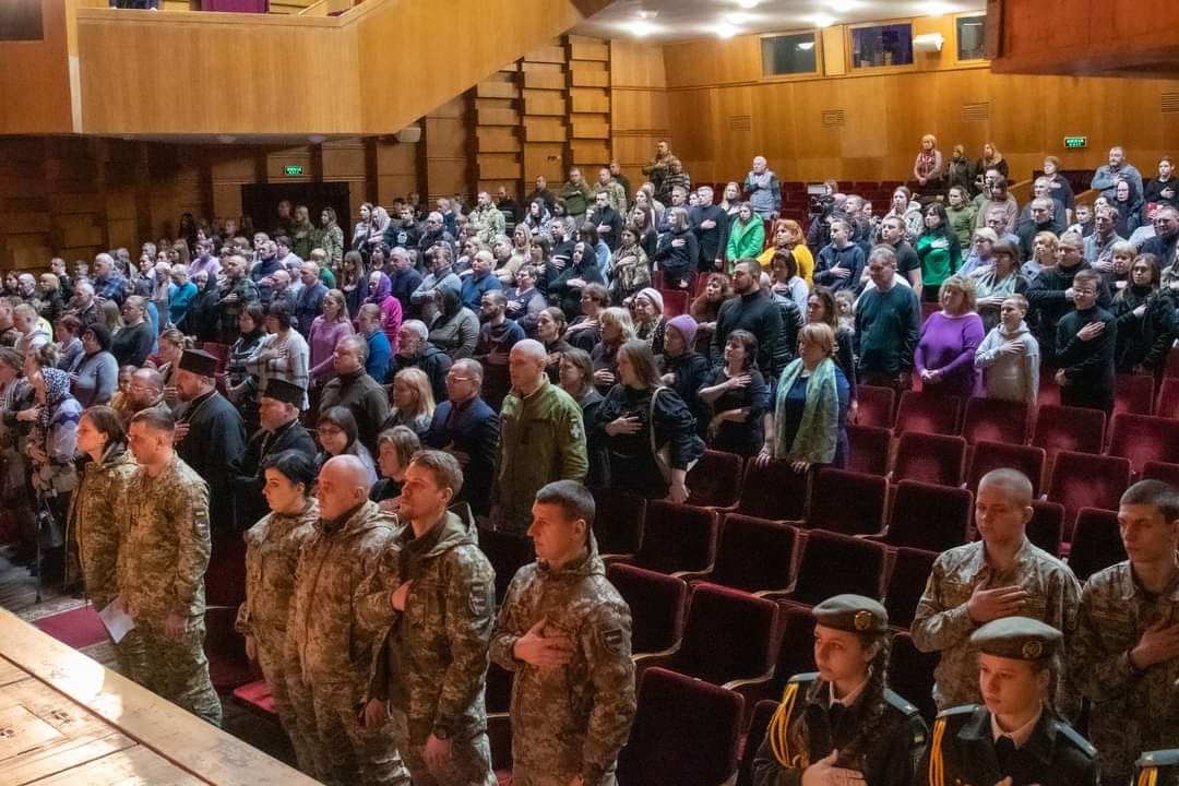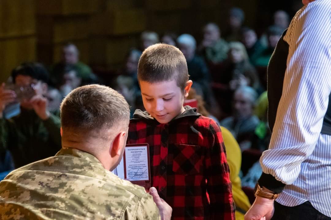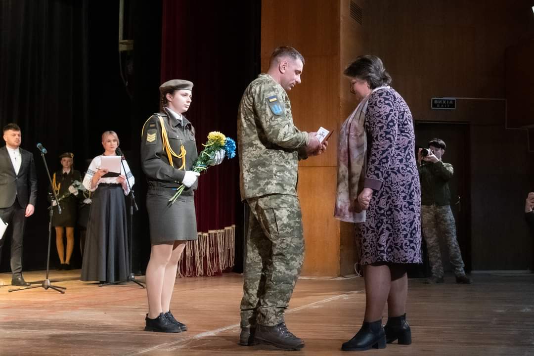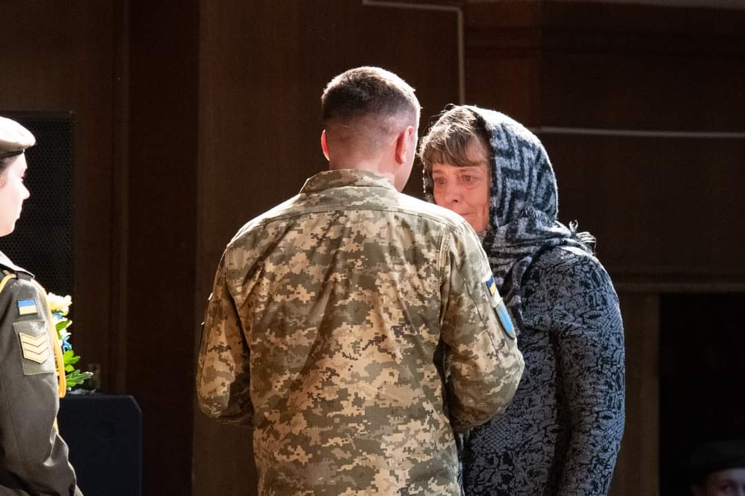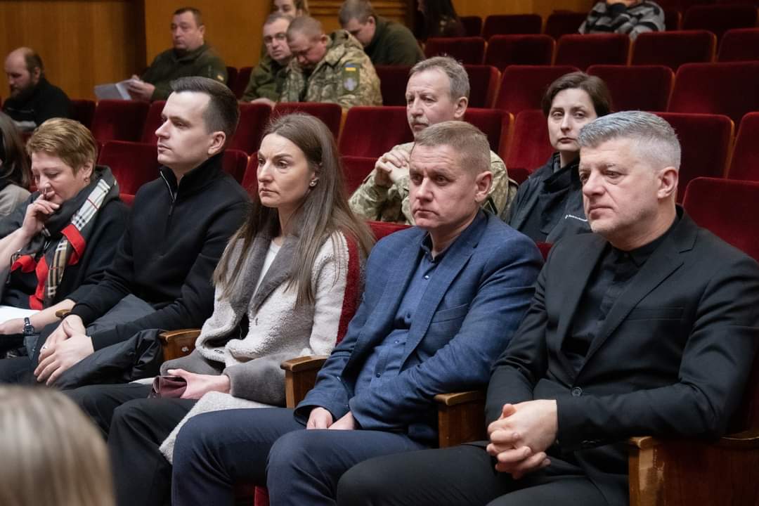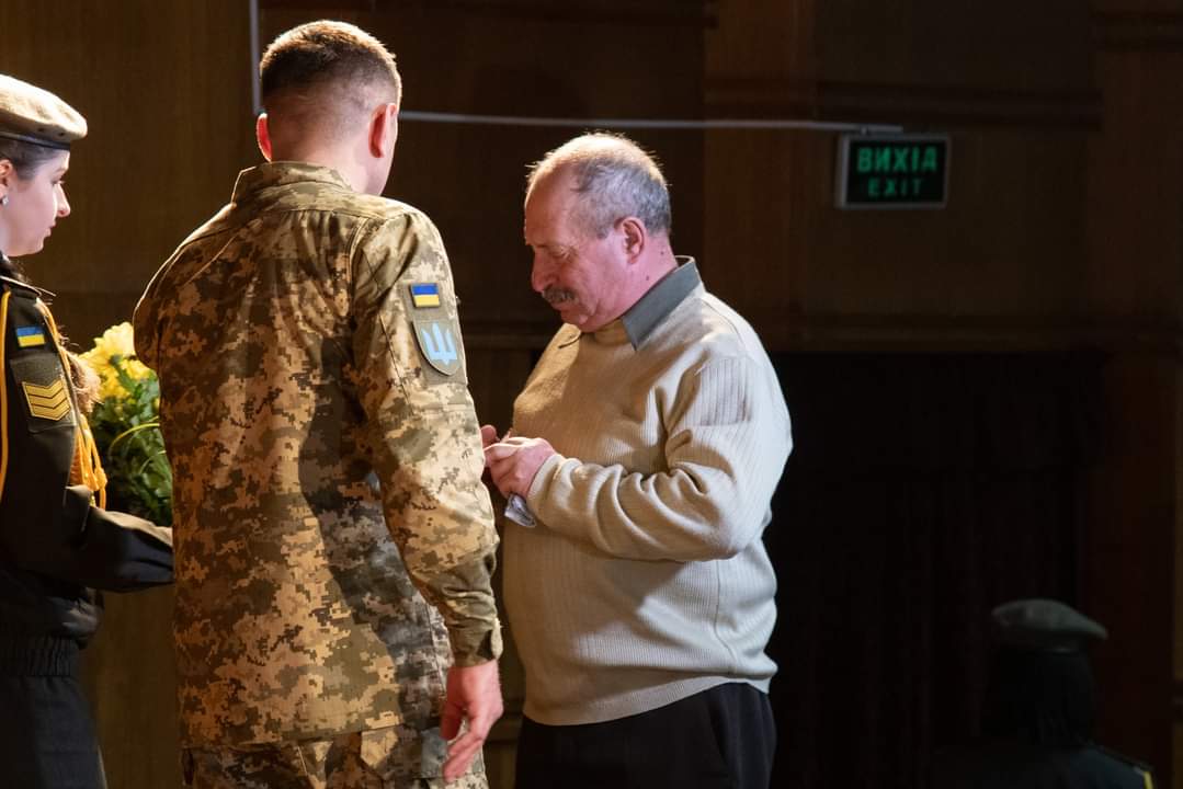 «Ще вчора я зі своїми бойовими побратимами нищив ворога на Куп’янському напрямку. Сьогодні ж стою перед вами і маю велику честь вручити пам’ятні відзнаки родинам наших Героїв, які для України зробили усе, що могли, віддавши найцінніше – своє життя», – наголосив він та запропонував усім присутнім вшанувати пам’ять про загиблих хвилиною мовчання.