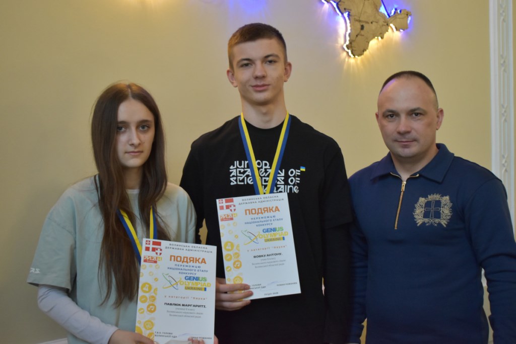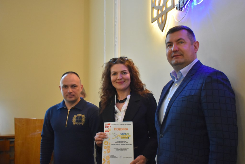 У стінах Волинської обласної військової адміністрації відбулось урочисте нагородження волинських школярів – переможців Національного етапу міжнародної екологічної олімпіади GENIUS Olympiad Ukraine. Привітали та відзначили юних науковців т.в.о. начальника Волинської ОВА Роман Романюк разом із головою Волинської обласної ради Григорієм Недопадом.