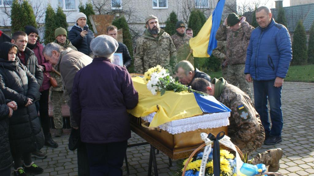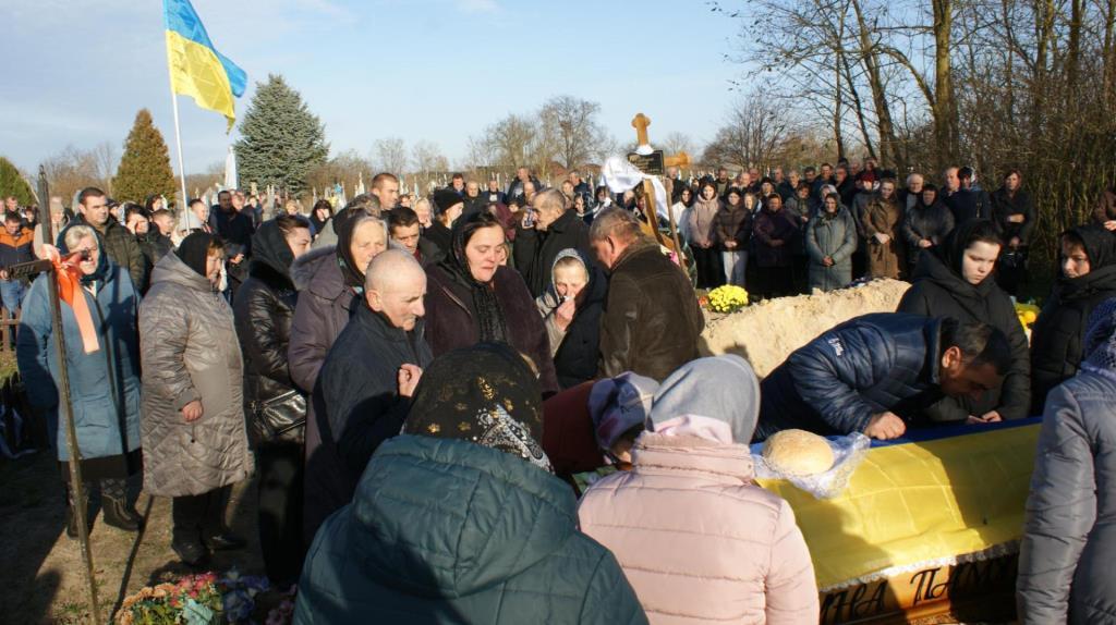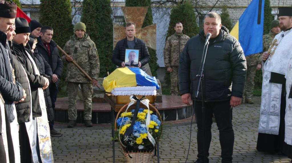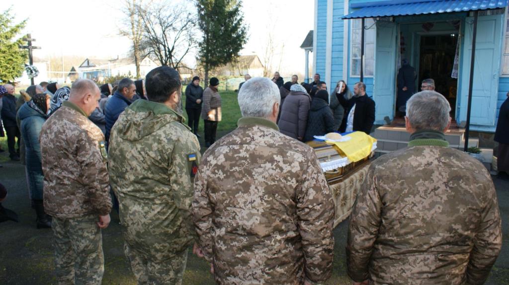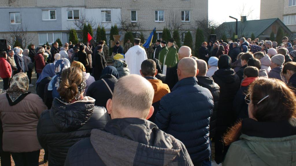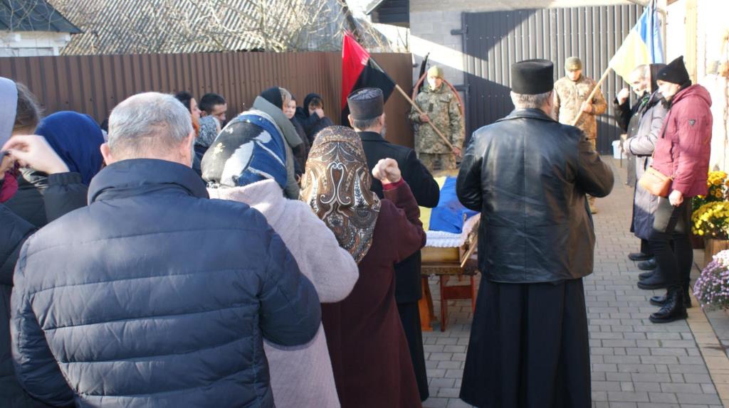На площі біля пам’ятного знака Борцям за волю та незалежність України священники звершили громадську панахиду. Біля домовини, накритої синьо-жовтим стягом, зібралися всі – рідні, друзі, побратими, односельці, і люди, які не були знайомі із захисником, але прийшли, аби подякувати за його службу та попрощатися.