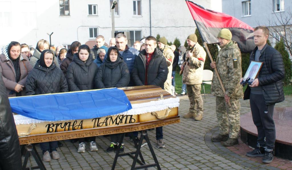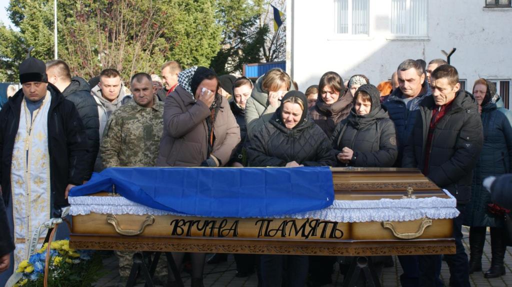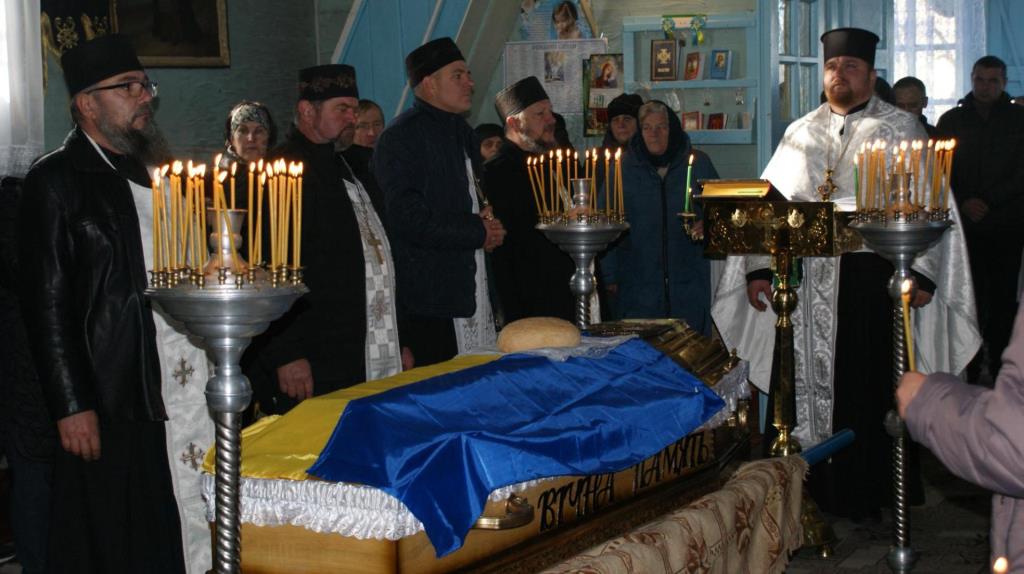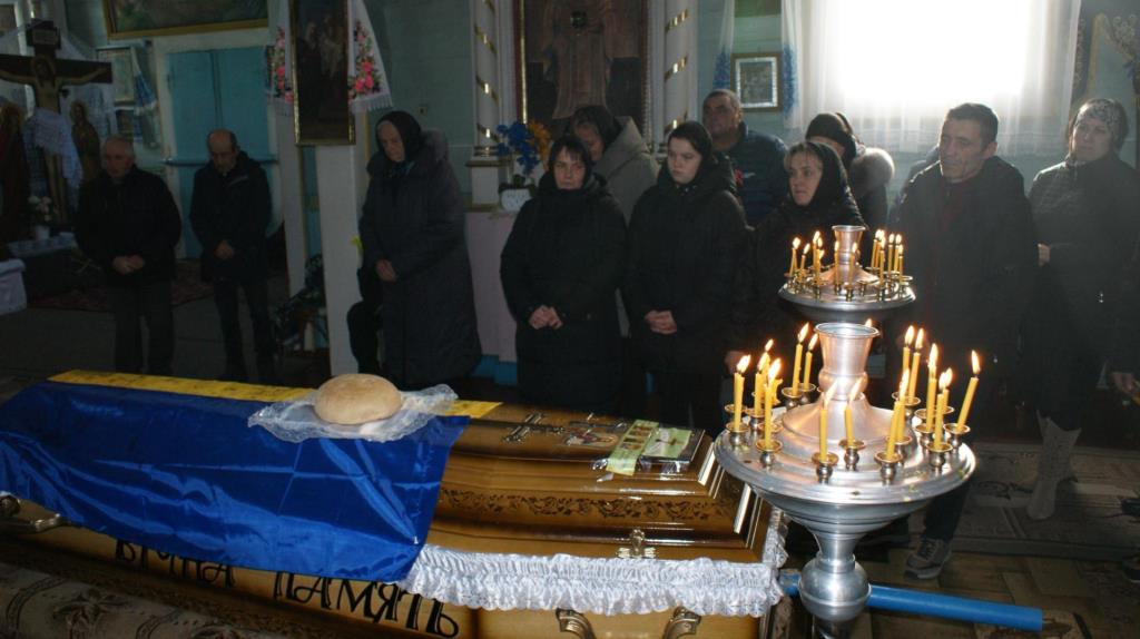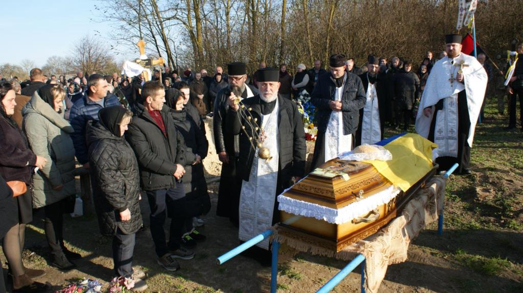 На площі біля пам’ятного знака Борцям за волю та незалежність України священники звершили громадську панахиду. Біля домовини, накритої синьо-жовтим стягом, зібралися всі – рідні, друзі, побратими, односельці, і люди, які не були знайомі із захисником, але прийшли, аби подякувати за його службу та попрощатися.