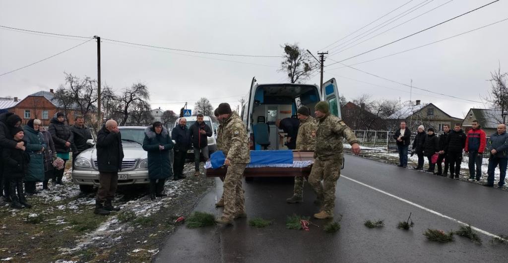 “Малими рученятами обіймає домовину наймолодша з дітей Героя – Іванка. Війна змусила її серце страждати від переживань за рідну людину, позбавила її батьківської опіки”, – йдеться у повідомленні.