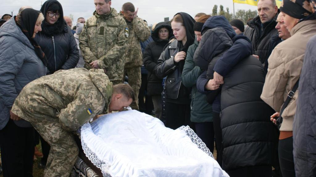 На кладовищі після короткої молитви рідні востаннє торкнулися труни. Болем пронизувало кожен подих, коли дружина, мов пташина, припадала до домовини, а дві донечки крізь сльози шепотіли слова прощання. Та, мабуть, ніщо не здатне вмістити материнський біль – жінки, яка втратила старшого сина, свій найбільший скарб.