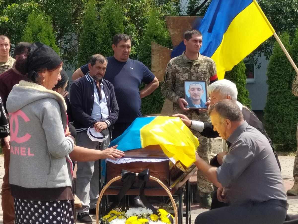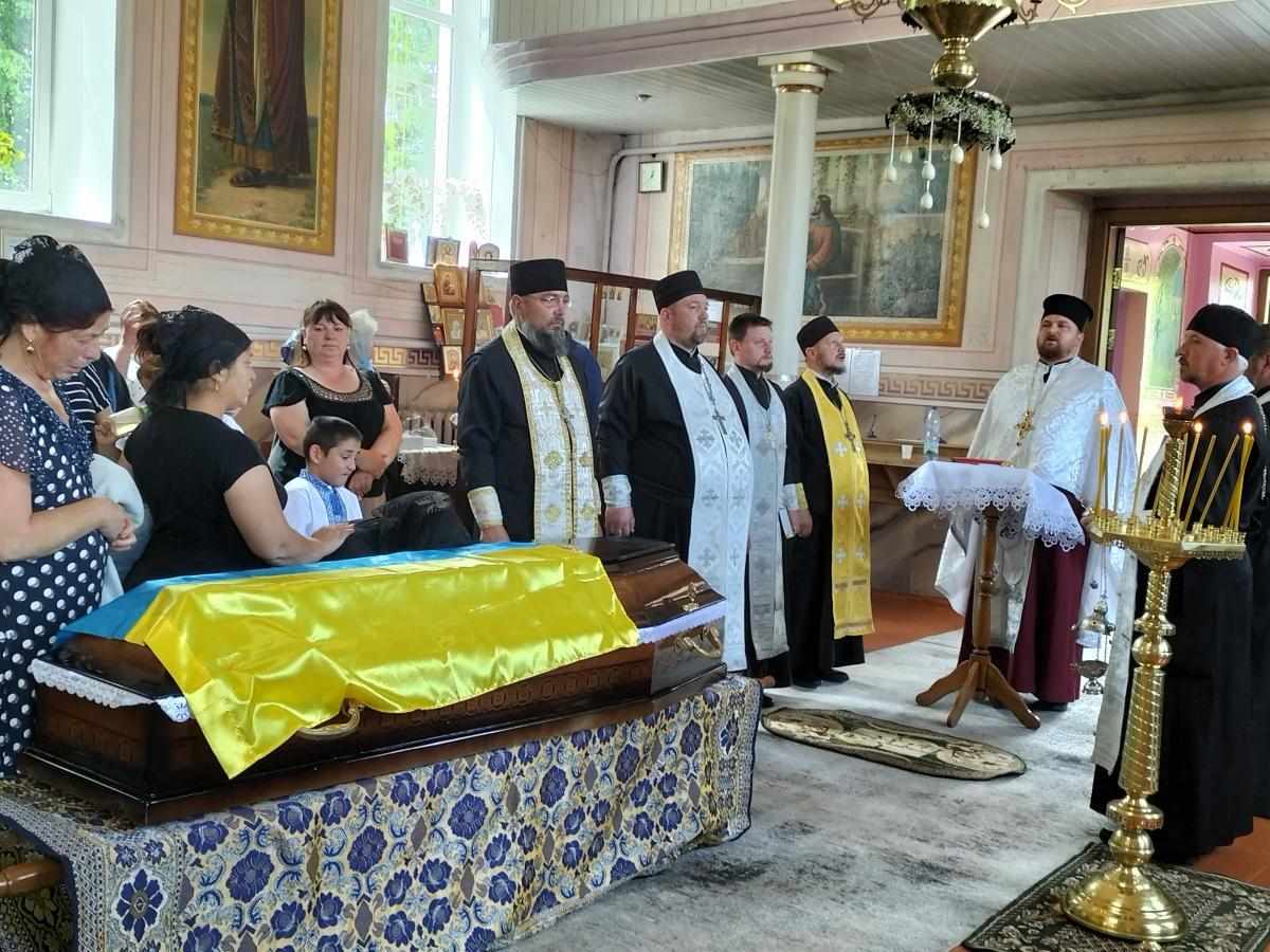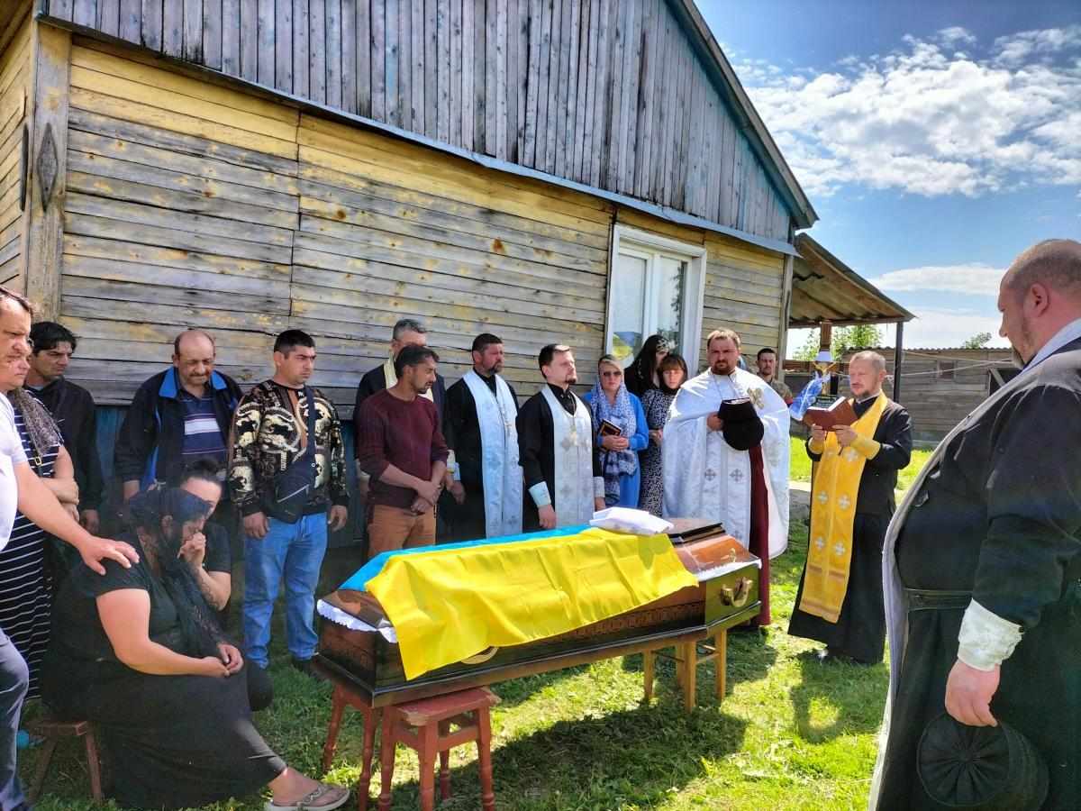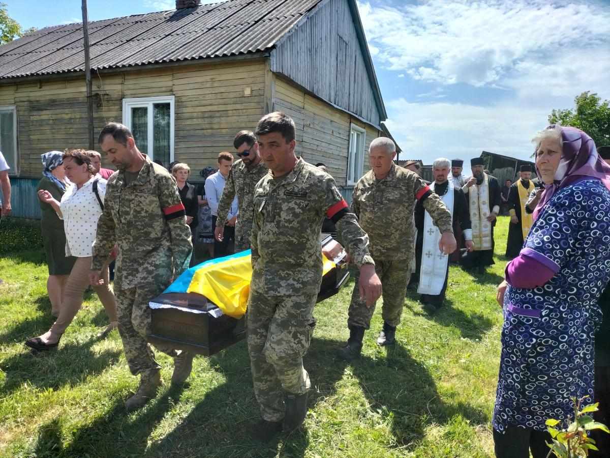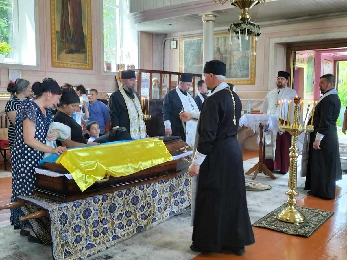 Під звуки військового оркестру та гучні постріли домовину з тілом опускають у холодну сиру землю. А Державний стяг, яким була вкрита домовина, військові передають синові Героя, як символ вільної та незалежної України, яку мужньо боронив і за яку віддав своє життя його батько.