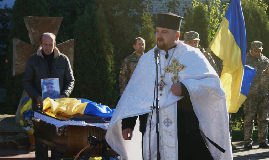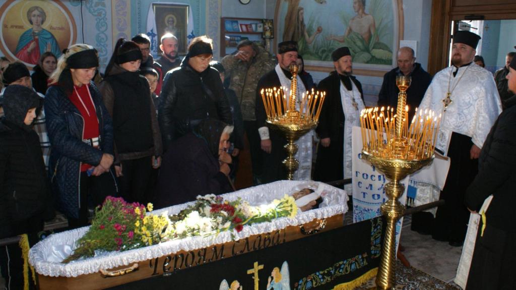 Після прощання у рідному домі тіло Сергія понесли до сільського храму, де священники Православної Церкви України відслужили чин відспівування.