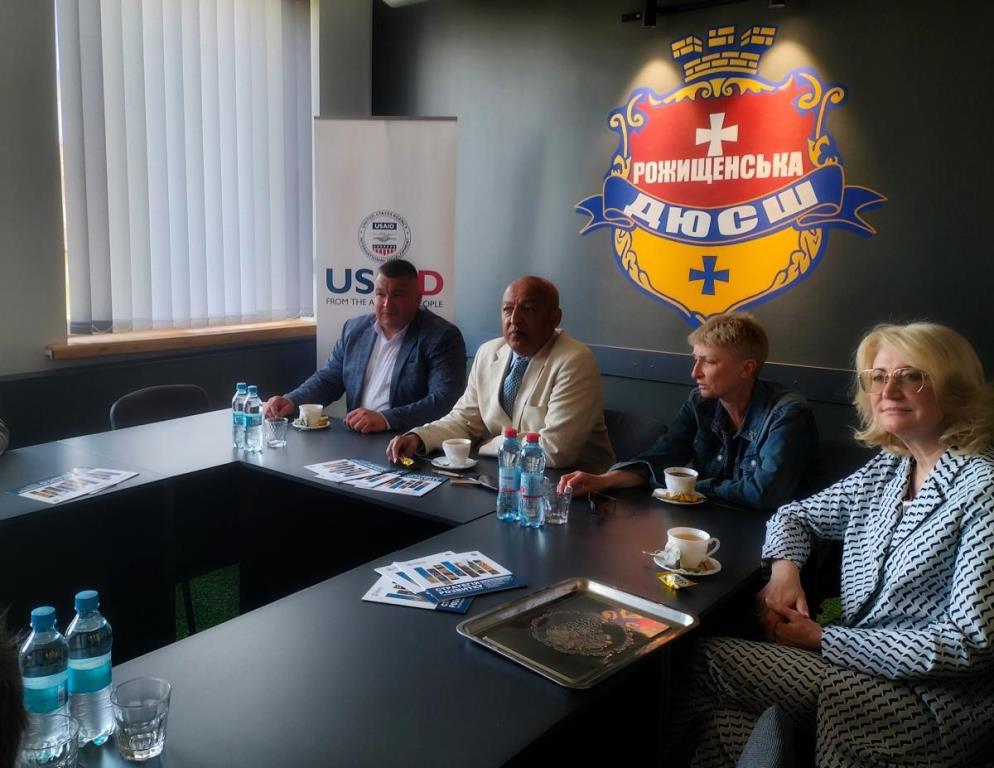 Представлення результатів співпраці Рожищенської громади з Проектом USAID «ГОВЕРЛА» розпочали з відвідання Рожищенської спортивної школи. У сучасному та новому методичному кабінеті, який був обладнаний завдяки можливості міжмуніципального співробітництва, відбулося представлення гостям Рожищенським міським головою Вячеславом Поліщуком та головною спеціалісткою з питань проектної та інвестиційної діяльності Рожищенської міської ради Марією Печко успішних результатів співпраці громади з Проектом USAID «ГОВЕРЛА» та обговорення впровадження подальших спільних проектів.
