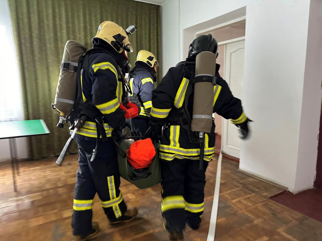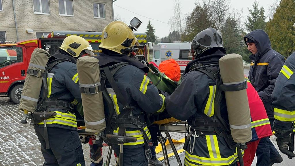 Під час навчань евакуювали двох постраждалих осіб та передали їх до карети екстреної медичної допомоги.