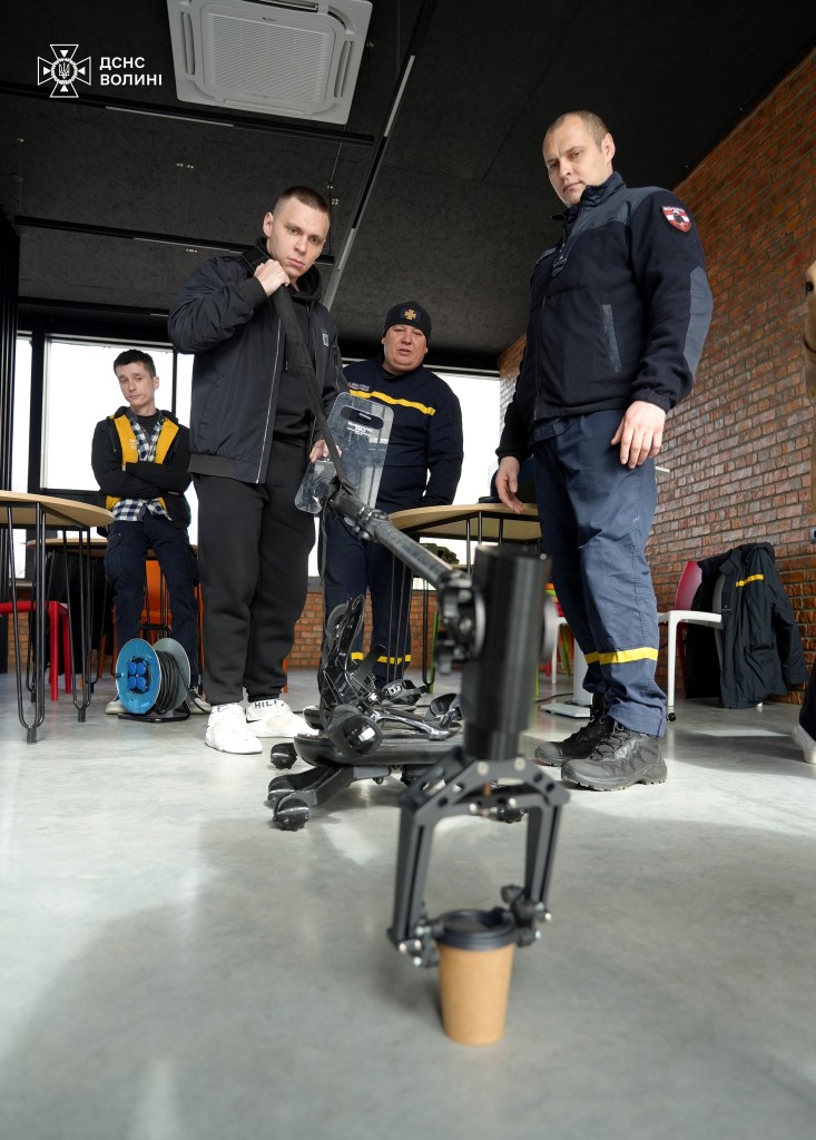 Крім того, піротехніки продемонстрували обладнання, яке використовують під час розмінування. Для студентів також організували практичне завдання: за допомогою спеціального маніпулятора вони намагалися підняти предмети різних форм і розмірів.