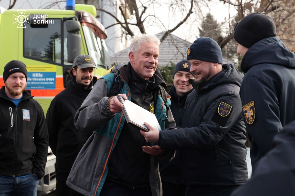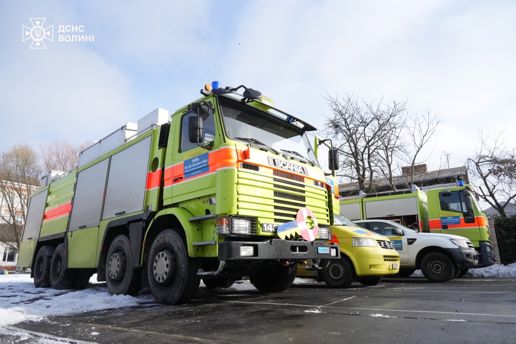 Цього разу президент асоціації «Hilfe für die Ukraine 8484» та його команда доправили на Волинь декілька одиниць спеціалізованої техніки для потреб підпорядкованих підрозділів ДСНС області.