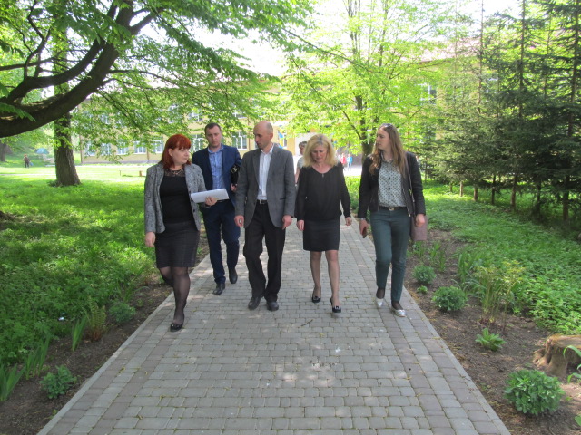 Після теоретичного обміну досвідом гості мали нагоду оцінити зроблене, зокрема, в освіті. Так вони відвідали місцевий опорний навчальний заклад – Рудківську ЗОШ І-ІІІ ступенів імені Володимира Жеребного, який загинув на Майдані під час революції Гідності.