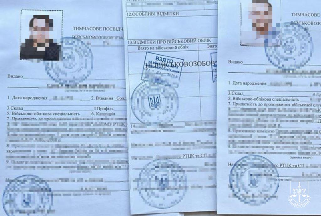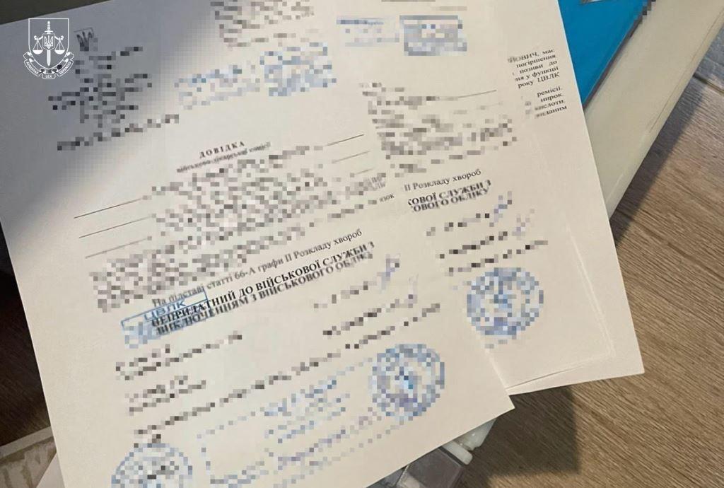 Під час обшуків у них вилучили понад тисячу меддовідок та бланків військово-облікових документів, які призначалися для чоловіків, що намагалися уникнути військової служби.
