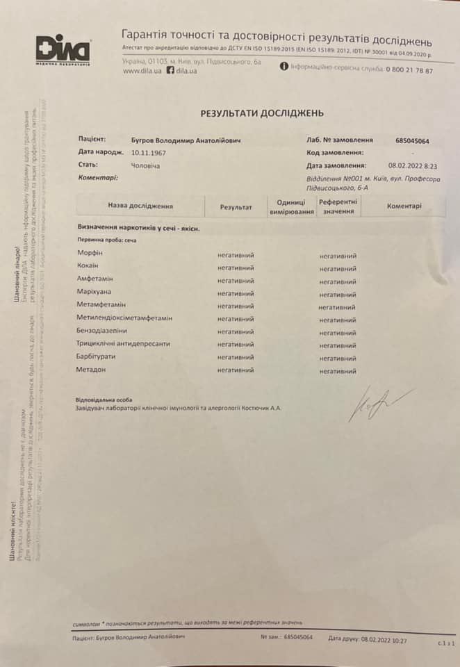 Водночас ректор спростував поширювану інформацію щодо можливого вживання наркотичних речовин, показавши результати досліджень однієї з приватних медичних лабораторій.