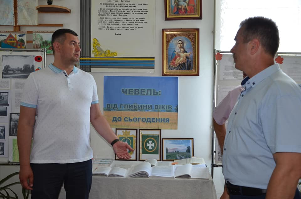 За активну громадську діяльність і вагомий особистий внесок у розвиток села почесними грамотами нагородили депутата Олександра Карпука, начальника відділу майна облради Михайла Імберовського та голову обласного фонду підтримки індивідуального житлового будівництва на селі Віктора Смолярчука. Гостей з Волині ознайомили з історичною виставкою «Село Чевель – від давніх часів до сьогодення», організовану в приміщенні Чевельської загальноосвітньої школи І-ІІ ступенів. Директор школи Олександр Добиш розповів, що частина школи була побудована ще у 1933 році, інша частина – в 1993 році. Із 2006 і до 2012 року побудували нову частину приміщення. Історична частина школи, зведена у 1933 році, має унікальну архітектуру з високими стелями та оригінальним розміщенням класів. За кілька років школа відзначатиме 100-літній ювілей із часу заснування. Наразі в навчальному закладі навчаються 45 діток. До слова, село Чевель вперше в історії згадується в 1521 році. Одна із версій походження назви села – від слова щавель. Інша – від назви колишньої річки. На жаль, кількість населення села зменшилась. Якщо у 1988 році було зафіксували 755 мешканців, то зараз їх – 496. Тому не дивно, що на честь ювілею чимало побажань стосувалися саме збільшення громади, адже від цього залежить і поява дитсадка, розвиток школи та й в цілому перспективи самобутнього села Чевель.