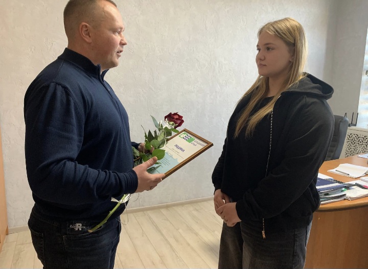 Богдан Тимошук оголосив спортсменці подяку Шацької селищної ради за високі спортивні досягнення, перемоги на всеукраїнському та міжнародному рівнях, наполегливість і силу волі, гідне представлення громади на європейській арені, а також вручив їй подарунок і квіти.