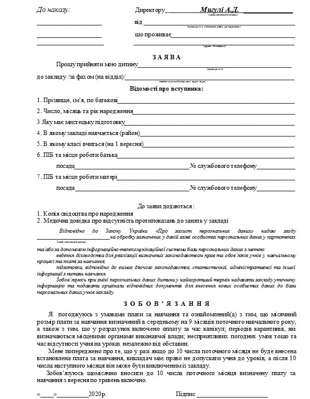 Школа мистецтв на Волині переносить вступні іспити на другу половину серпня