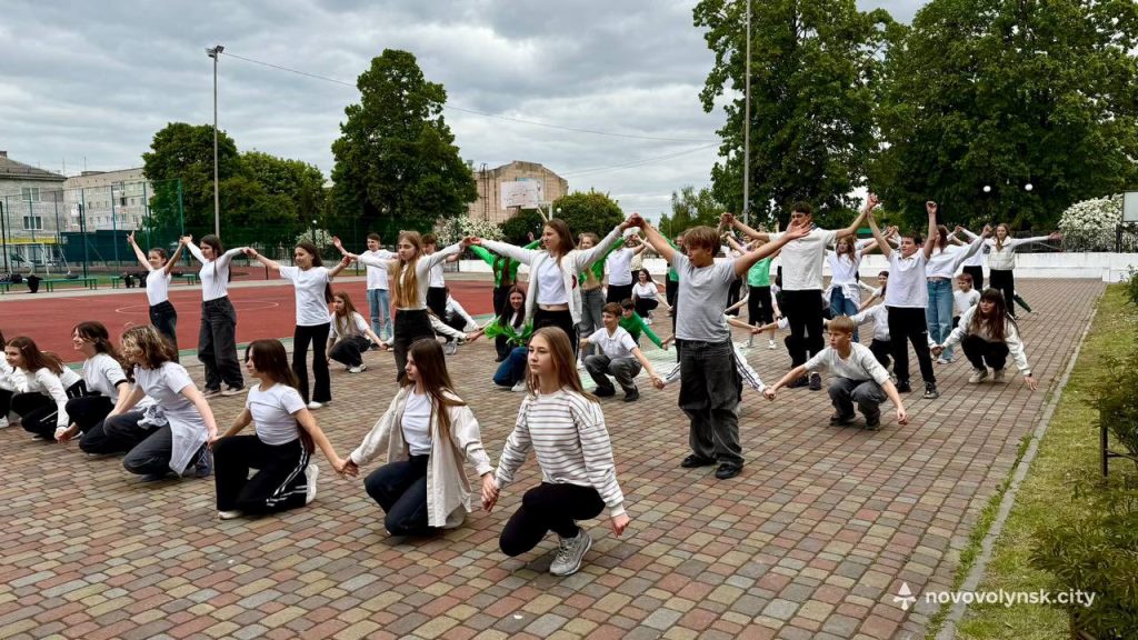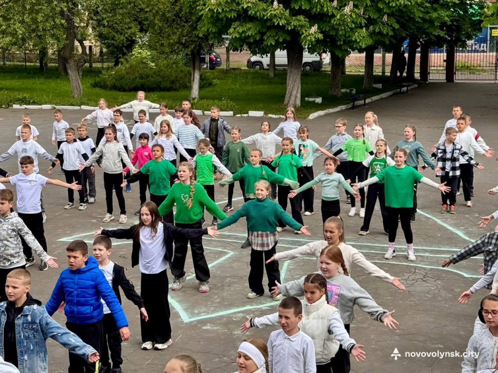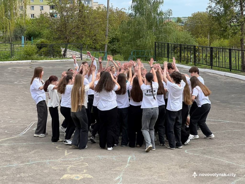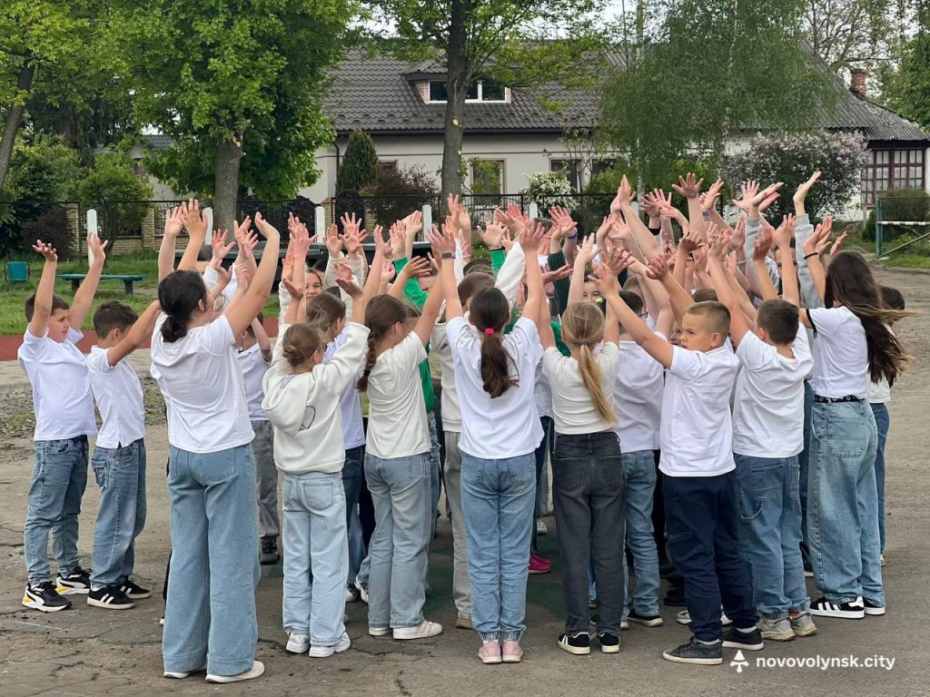 9 травня, з нагоди Дня Європи в Україні, у ліцеях Нововолинської громади провели патріотичний флешмоб. Школярі вийшли на подвір’я своїх закладів у біло-зеленому одязі – саме ці кольори є символічними для Нововолинська.