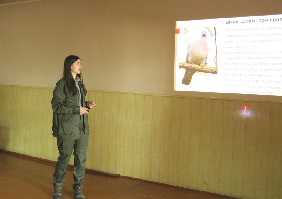 Захід розпочався із мультимедійного уроку, який складався із презентацій про НПП «Цуманська пуща», яку провела заступник начальника відділу еколого-освітньої та рекреаційної роботи парку Грицюк Юлія. Продовжив інженер відділу Рудік Максим презентацією про міграцію птахів. Завершили урок презентацією про “Птаха року-2018” – припутня. На занятті були учні 6-го, 8-го, 9-го класів, загалом 40 дітей.