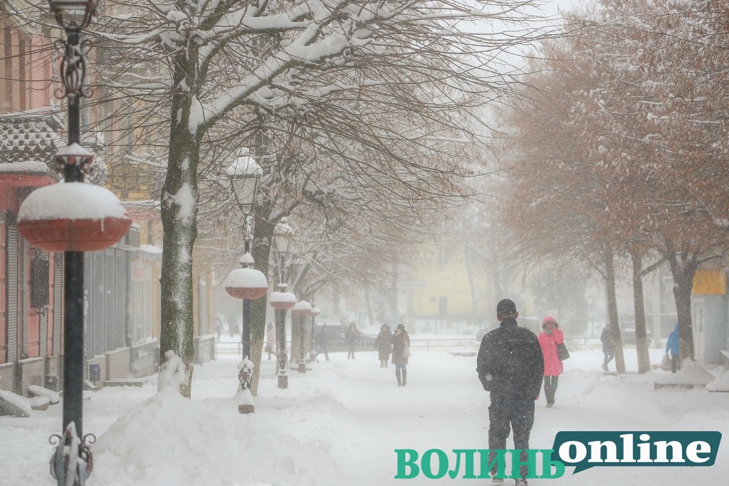 Сніг замітає Луцьк. ФОТОРЕПОРТАЖ