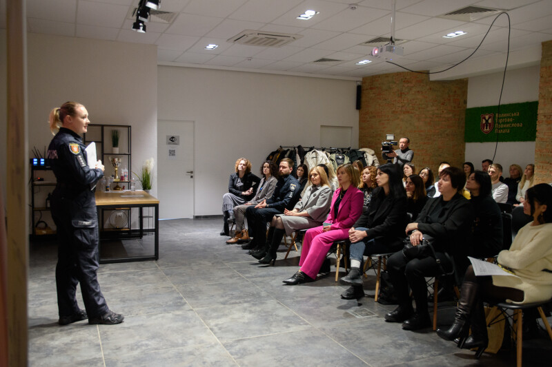 Заступник міського голови Ірина Чебелюк взяла участь у основному заході соціального проекту «Безпек(л)а», який відбувся сьогодні, 27 листопада, в приміщенні Волинської торгово-промислової палати.