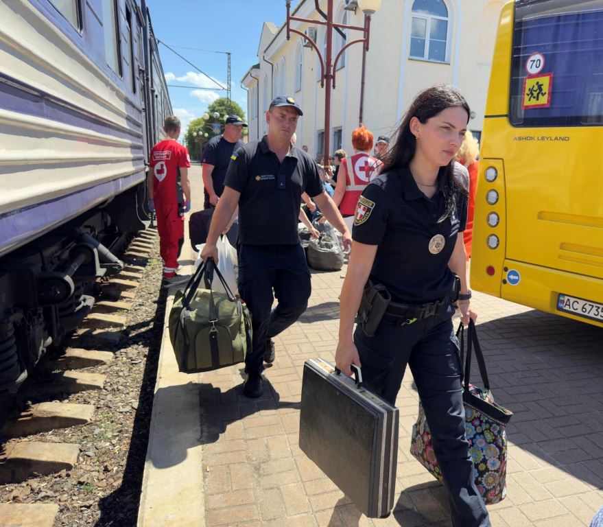 Рятувальники допомогли дітям і дорослим зійти з потягу, перенести речі до автобуса, надали моральну підтримку тим, хто її потребував.