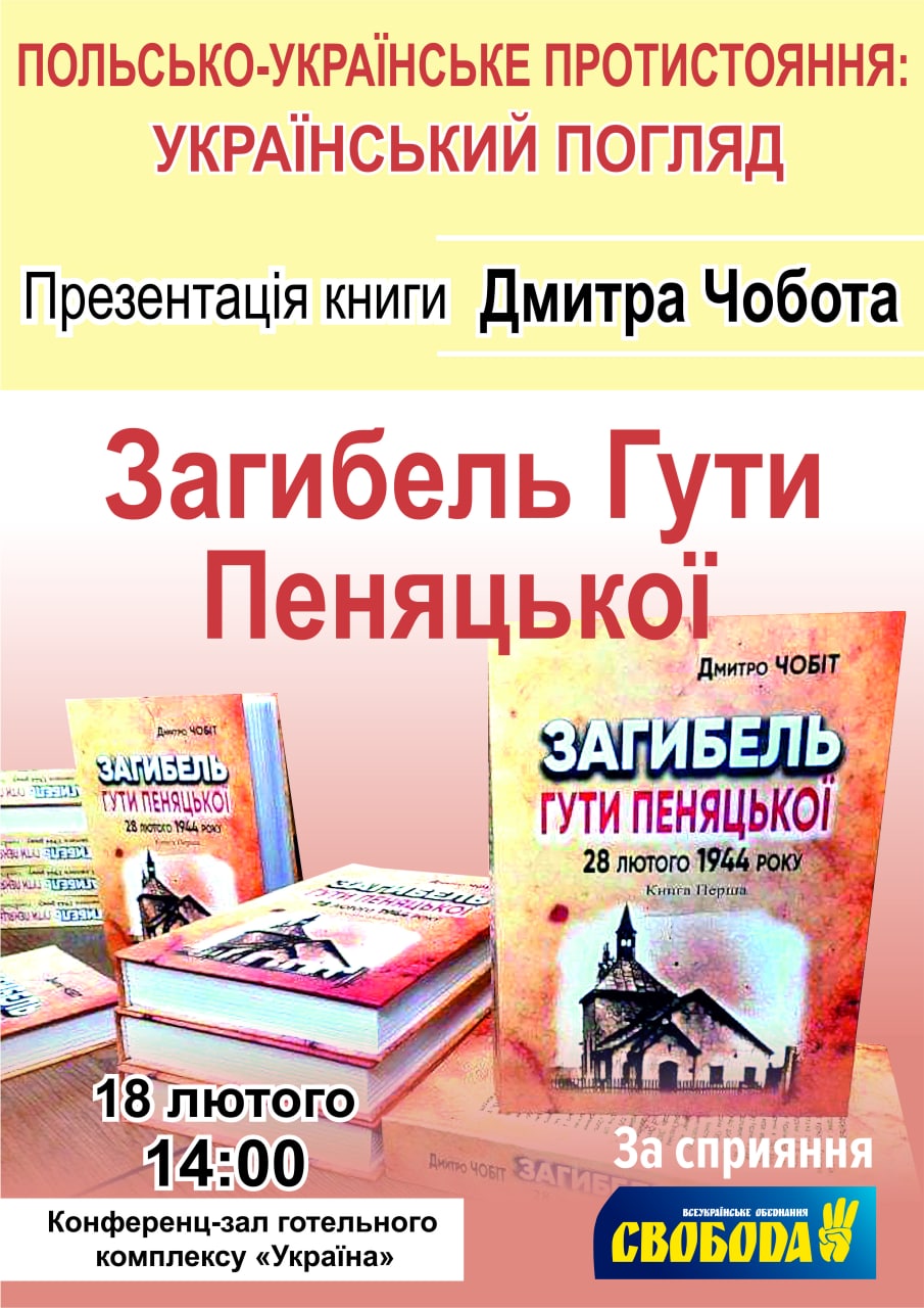 У четвер в Луцьку відбудеться презентація книги Дмитра Чобота «Загибель Гути Пеняцької» за участі автора, істориків, депутатів місцевих рад.