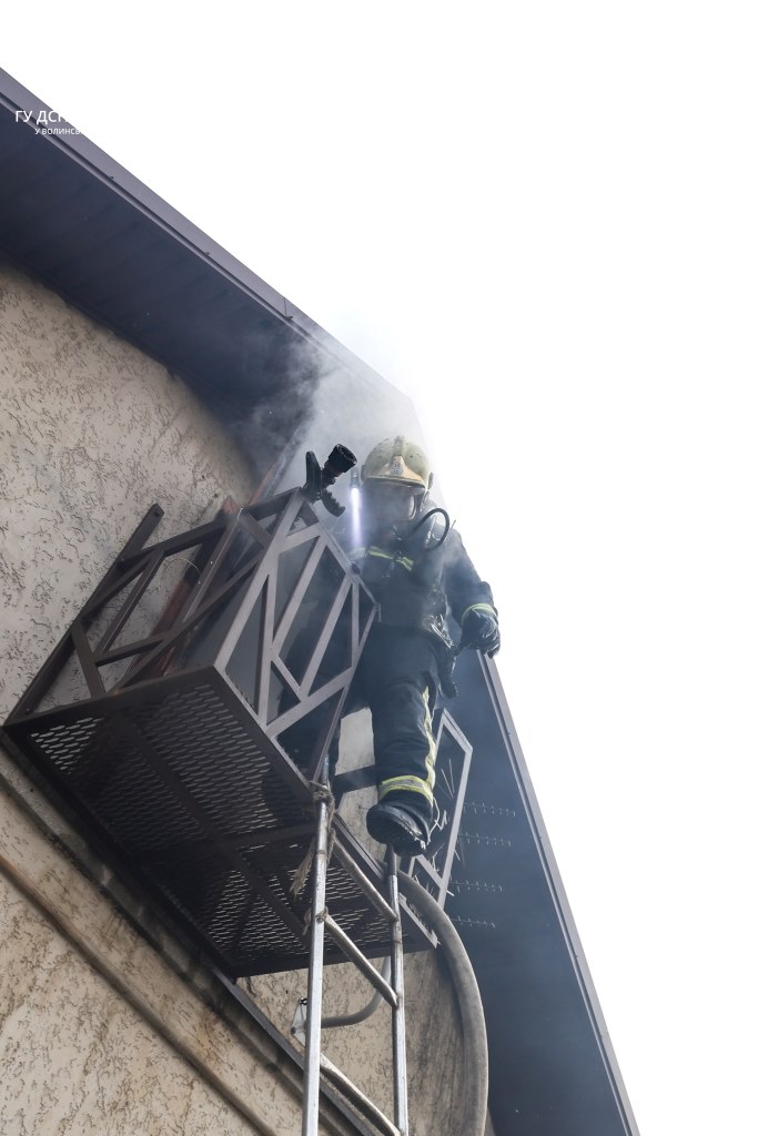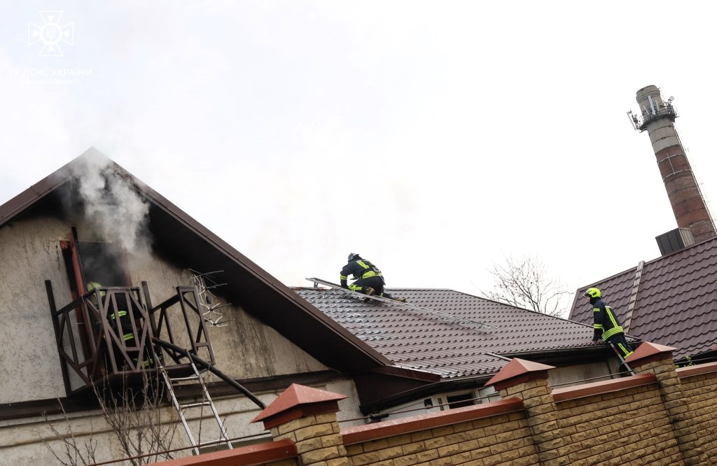 Для гасіння пожежі на горищі будинку подали три водяних стволи, рятувальники працювали в захисних апаратах через сильне задимлення, частину металевої покрівлі будинку довелося демонтувати для гасіння вогню. Вогонь не поширився на житлові кімнати.