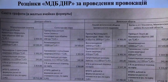 Він оприлюднив список з переліком храмів, на які треба вчинити напади, з розцінками у російських рублях.