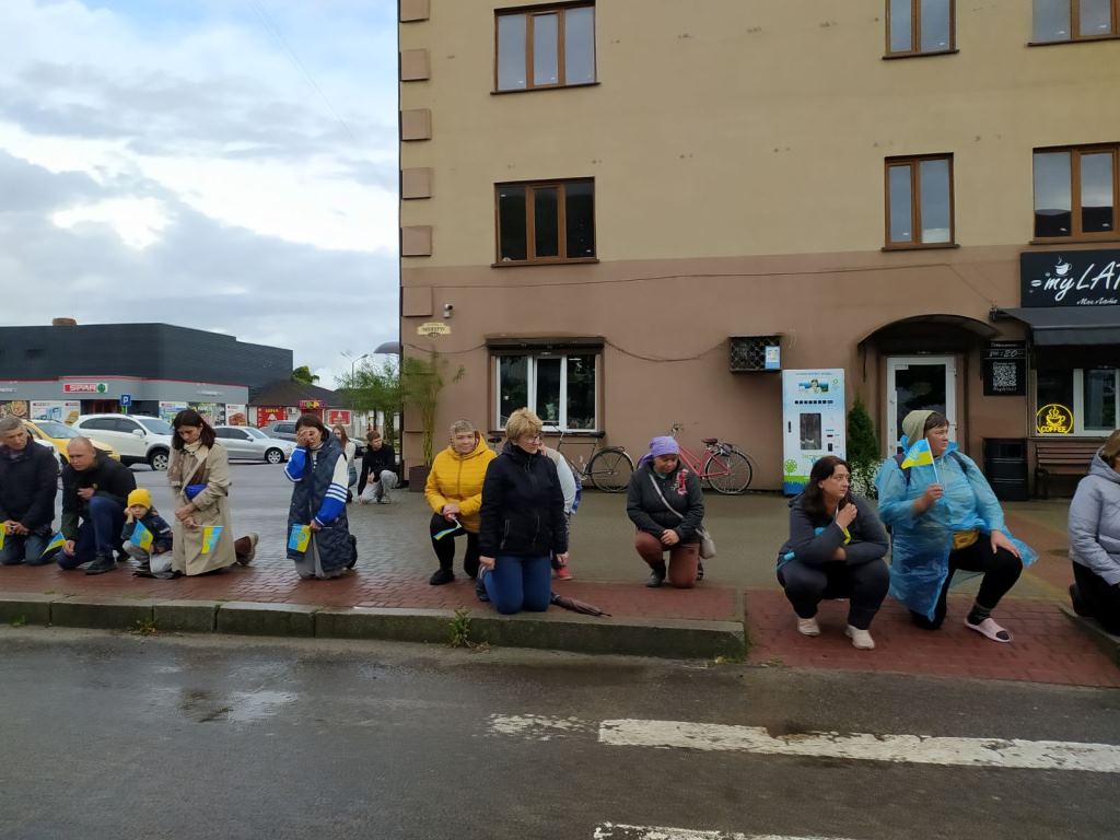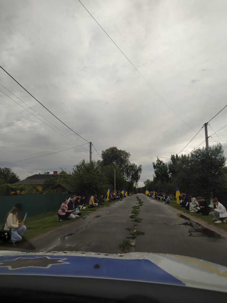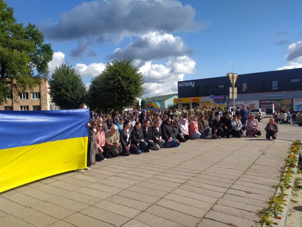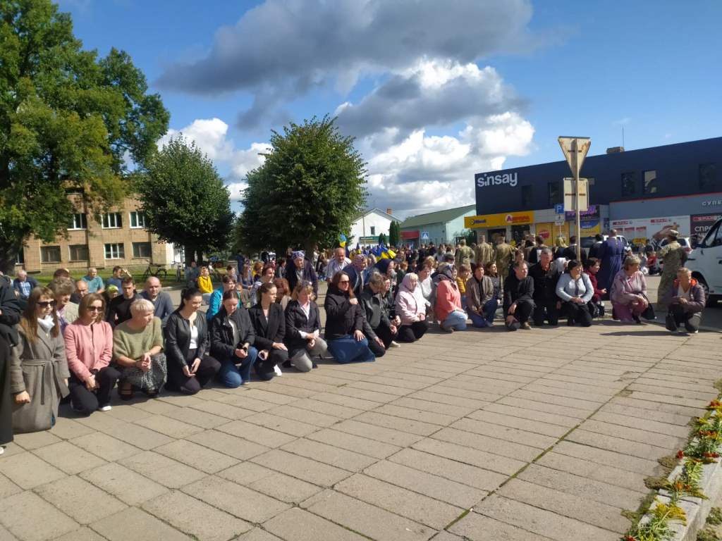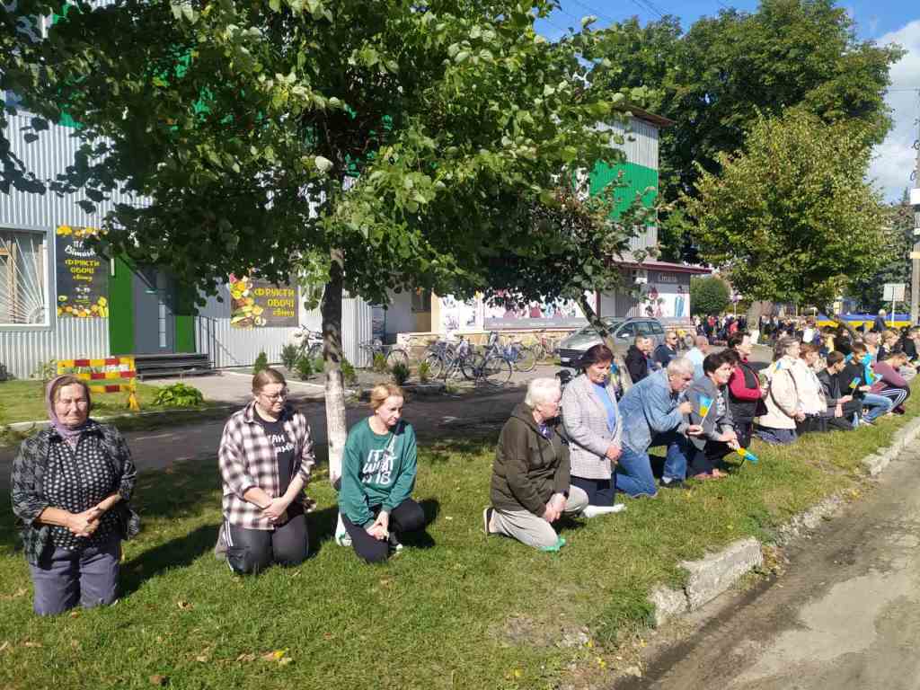 Люди виходили з домівок, схиляли голови, ставали на коліна, тримаючи в руках квіти та синьо-жовті стяги.