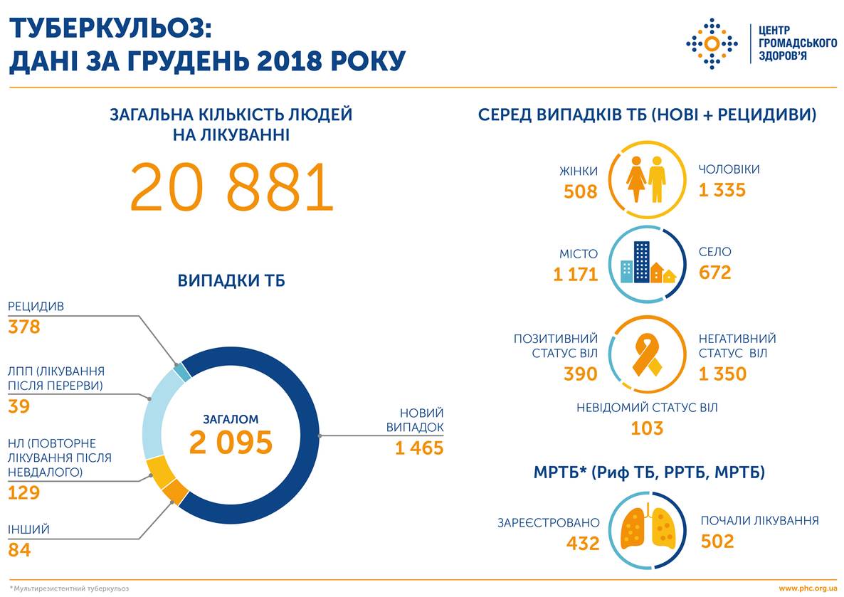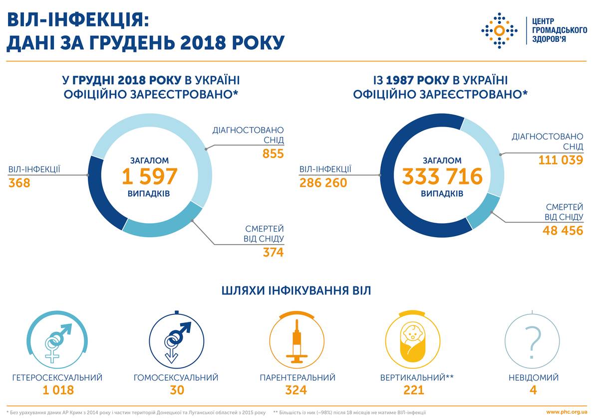 Статистика ВІЛ та туберкульозу в Україні за грудень 2018 року. ІНФОГРАФІКА