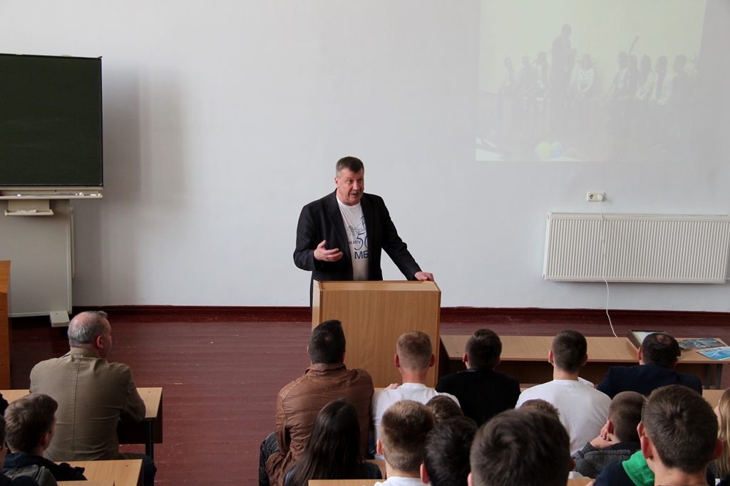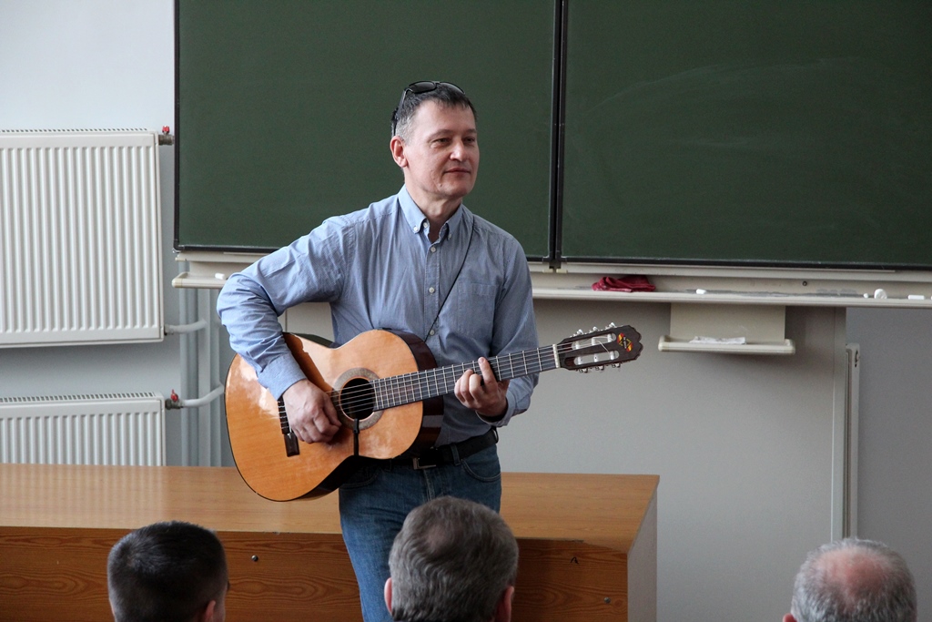 Натомість, випускник машинобудівного факультету, поет, бард-виконавець, митець-волонтер Микола Більшевич виступив із музичним вітанням.