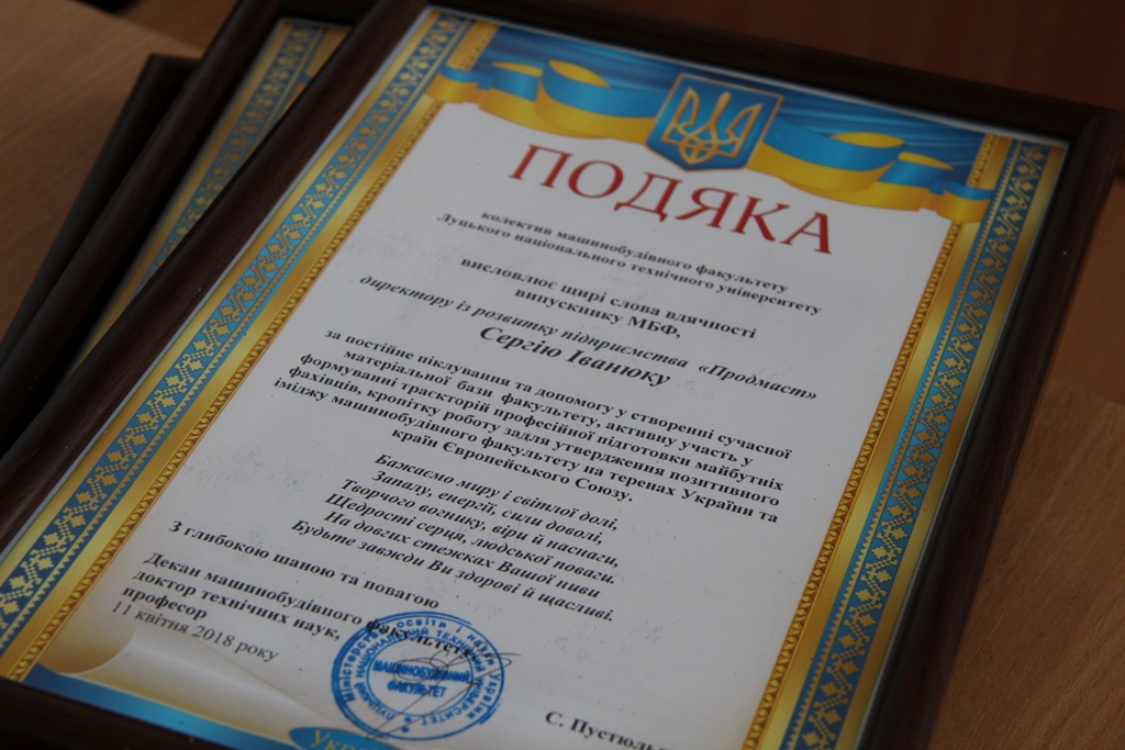 Почесних гостей вишу відзначили подяками від колективу МБФ за постійне піклування та допомогу у створенні сучасної матеріальної бази факультету, активну участь у формуванні траєкторій професійної підготовки майбутніх фахівців, кропітку роботу задля утвердження позитивного іміджу машинобудівного факультету на теренах України та Європейського Союзу.